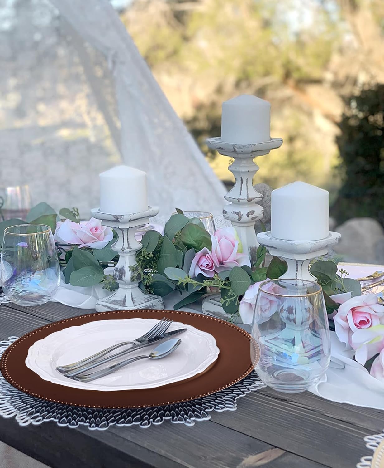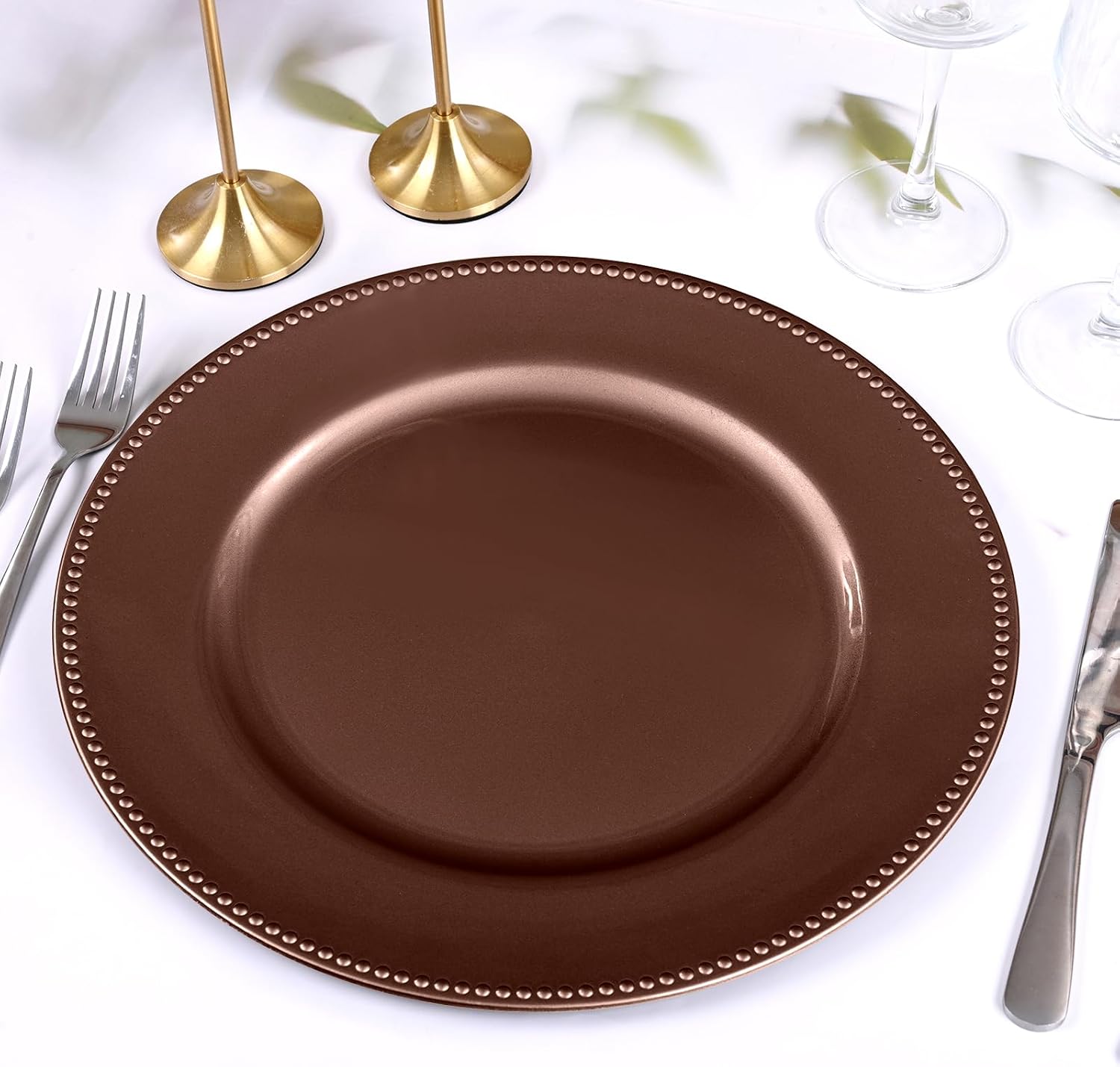 | Included Components | 50 Pcs Brown Charger Plates |