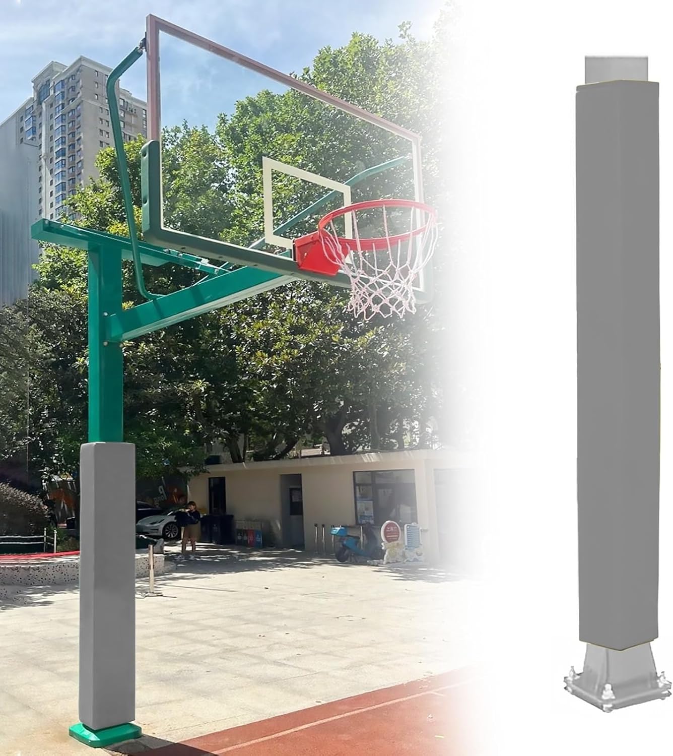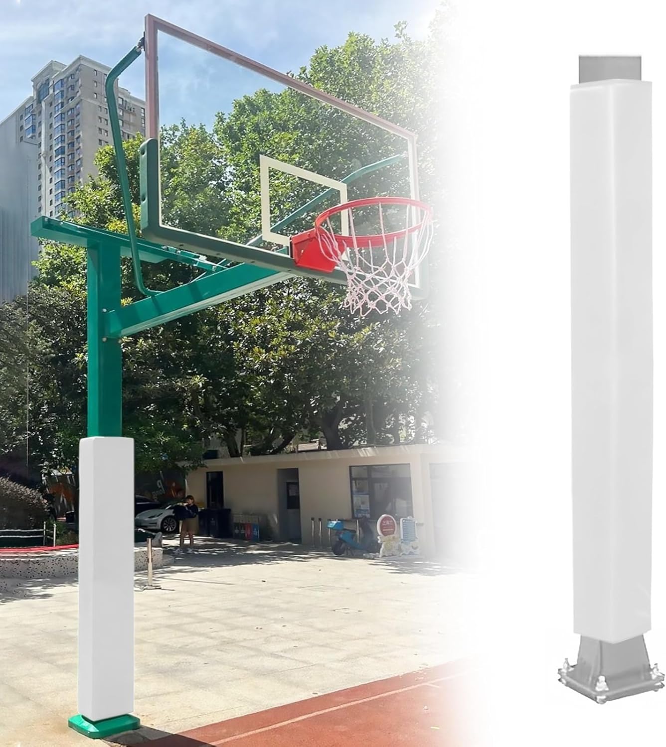 Square Pole Protective Covers boast exceptional weather resistance, ensuring long-term stable performance even when exposed to complex outdoor environments for extended periods. The wrap-around impact-resistant design incorporates thickened pearl cotton with high elasticity for shock absorption. Equipped with strong adhesive hook-and-loop fasteners for easy installation, the pole pads remain securely attached across diverse usage scenarios. Versatile compatibility fits square poles/posts across diverse applications● Specifications:Material: PVC shell + pearl foam (internal)Foam thickness: 2cm/0.78inColors: Black, White, Gray, Red, Yellow, Blue, GreenCompatible poles: Square posts/columnsPole height: 72in/183cmInner Dimensions (L×W): 4×4in (10×10cm), 5×5in (12.7×12.7cm), 6×6in (15.2×15.2cm), 7×7in (17.8×17.8cm), 8×8in (20.3×20.3cm), 9x9in (22.9x22.9cm), 10×10in (25.4×25.4cm), 11x11in (27.9x27.9cm), 12×12in (30.5×30.5cm), 13×13in (33×33cm)Applications: Suitable for patios, garages, awnings, parking lots, playgrounds, gyms, soccer goalposts, basketball hoops● Package Contents: 1 x Basketball Pole Pad● Important NotesHand-measured dimensions may vary by 1-3cm. We appreciate your understanding.A slight odor is normal and will dissipate naturally within 2-3 days.Due to lighting and monitor variations, the actual product may have slight color differences. The physical item is the final authority.