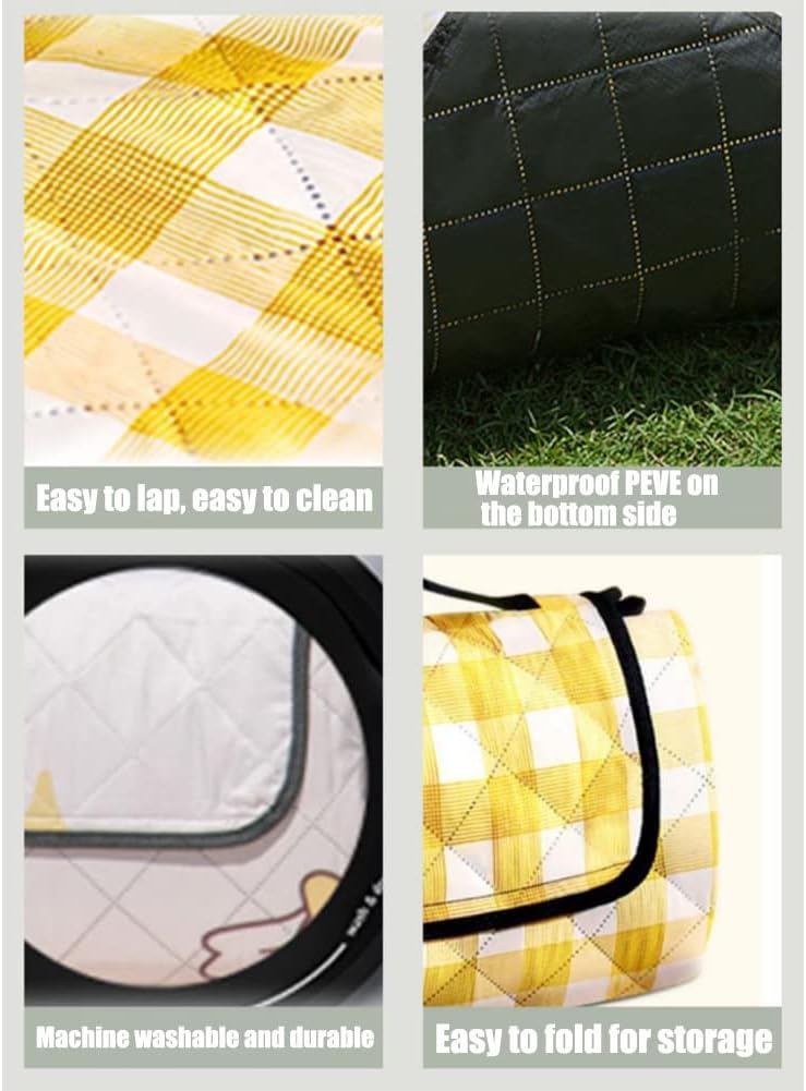 Picnic blankets made of soft material and waterproof bottom, can be used in most outdoor activities.It's definitely a great choice for you to use in the beach, grass, sports event, concerts or as a gift.Also you can use it as a playing mat for your little ones in the yard or park.Bring your loved ones and enjoy a nice picnic time together!Package include:1 x Picnic Blanket