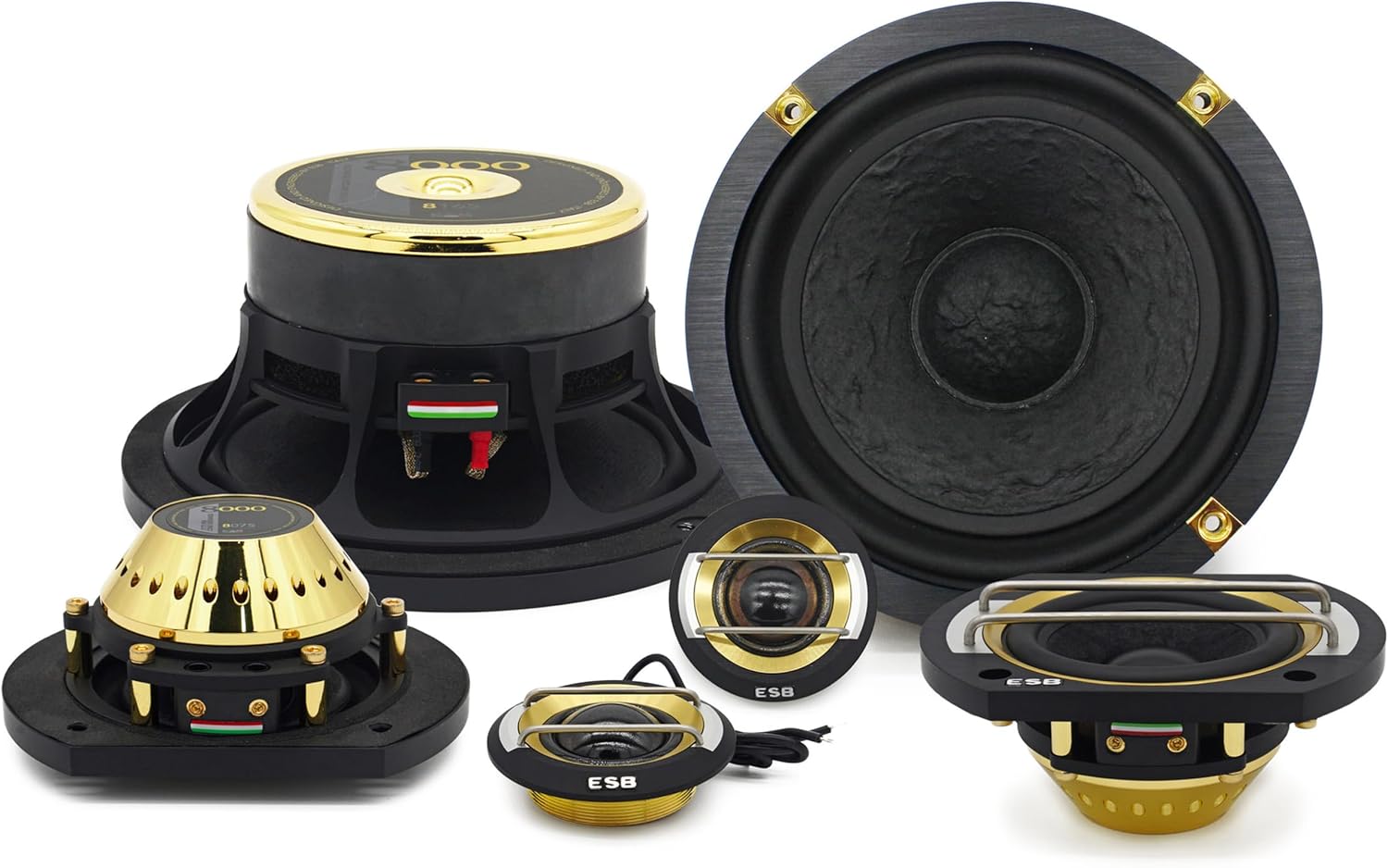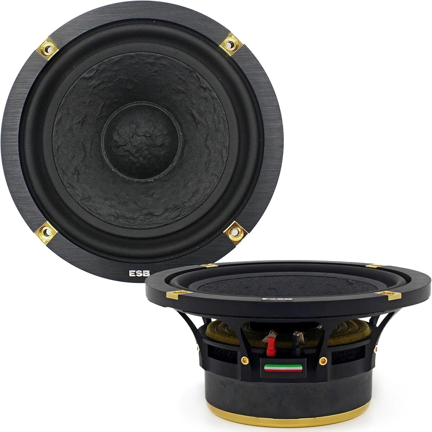 The ESB Audio 8.6K2S is a premium 2-way component speaker system from the 8000 Series, designed for discerning car audio enthusiasts seeking natural tonal balance, dynamic response, and high-fidelity sound. Engineered with a rigid 6.5″ mid-woofer and a refined 1.1″ tweeter, the 8.6K2S delivers powerful midbass, articulate mids, and detailed highs. Precision CNC-machined components, optimized motor designs, and advanced materials ensure durability and musical performance that matches ESB’s Italian acoustic heritage. Technical Specifications System Configuration: 2-Way Component Speaker System (Mid-Woofer + Tweeter) Mid-Woofer (8.165): Size: 6.5″ / 165 mm Nominal Impedance: 4 Ω Nominal Power Handling: 160 W RMS Transient / Peak Power: 320 W Frequency Response: 45 Hz – 4 kHz Sensitivity: ~89 dB 1 W/1 m Cone Material: Non-pressed paper cone Voice Coil: 32.4 mm aluminum former Magnet: Y35 ferrite, vented design Tweeter (8.028S): Size: 1.1″ / 28 mm Nominal Impedance: 4 Ω Nominal Power Handling: 110 W RMS Transient / Peak Power: 220 W Frequency Response: 940 Hz – 25 kHz Sensitivity: ~91 dB 1 W/1 m Dome Material: Torcon soft dome Magnet: High-grade neodymium