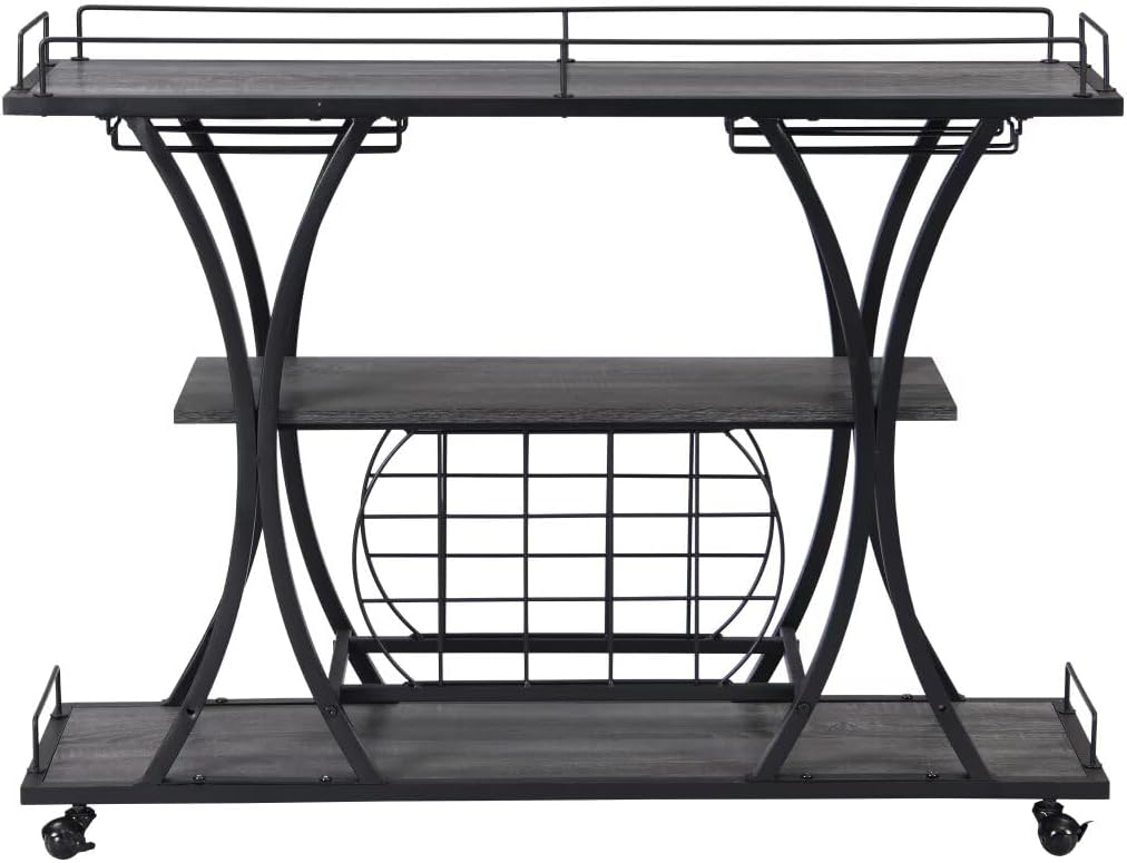 Bar Cart Gold, 3 Tiers Home Bar Serving Cart on Lockable Wheels, Rolling Alcohol Cart with Tempered Glass Shelves Guardrail Wine Rack, Modern Wine Cart for Home Kitchen Dining and Living Room, Black