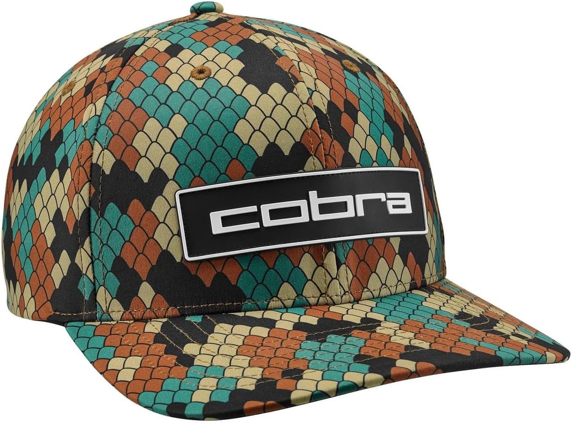 The Tour Tech Snapback Cap is one you will see on Rickie week in and week out on TOUR. The brim has a slight curve and a classic FlexFit 110 cap with a moisture-wicking sweatband. On the front of the hat is a framed COBRA silicone linear patch and on the back a flat embroidered Crown C logo.