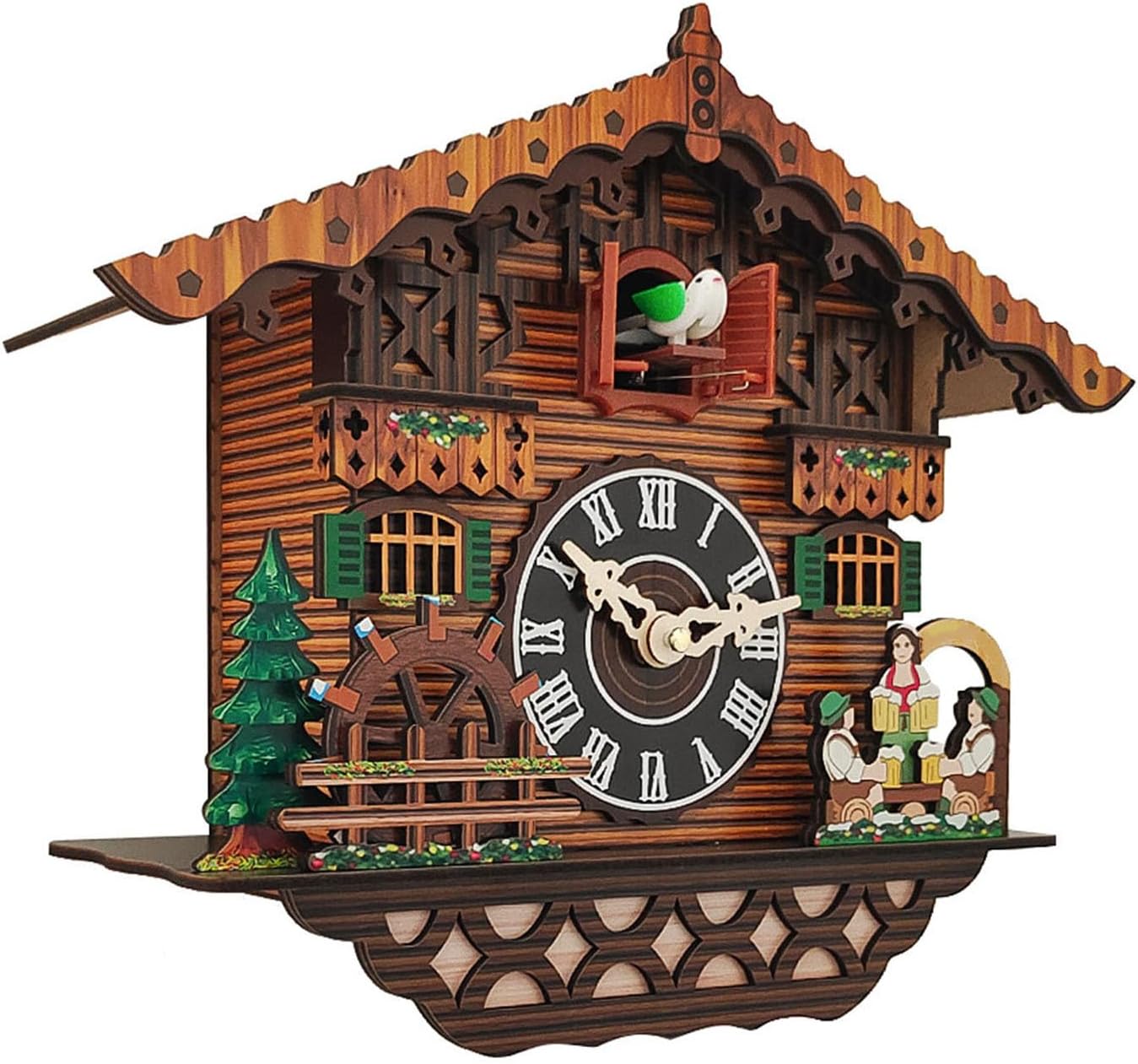 Product specificationProduct Name:Cuckoo Wall ClockMaterial: MDFMovement type: Sweep second movementDisplay type: printed patternSize(as the picture shows)310 x 160 x 100 mm / 11.8 x 9.6 x 4 inchesDimensions including chain:450 x 228 x 100 mm / 17.7 x 8.9 x 4 inFunction:Timekeeping on the hour (with birds chirping)Shape:HousePower Source:Battery PoweredAre Batteries Included:NoTypical black forests cuckoo clocks are still today among the most beautiful and popular ways of wall decoration. Get the famous Black Forest charm into your home with cuckoo clock.Package Contents:1x Cuckoo Wall ClockNote: Due to different monitors and lighting effects, the actual color of the product may be slightly different from the color shown in the pictures, thank you!Due to manual measurement, please allow 1-2cm measurement deviation.