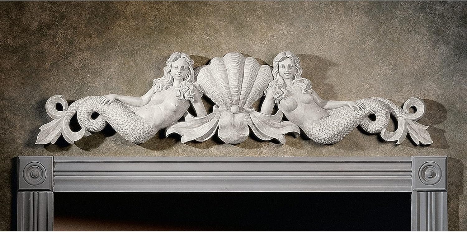 Drawing on an 18th century sculpture, it replicates architecture often found atop doorways, paintings, tapestries, and windows. This exclusive antique stone finished Mermaid is cast in quality designer resin for home and garden. 39"Wx2½"Dx9"H. 5 lbs.