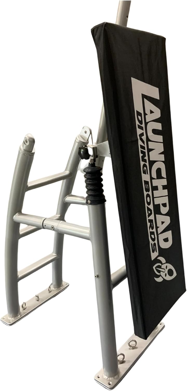 Package comes with diving board, Surface Mount, Thru-Bolt Mount, and Space Mount Kit. 3M foam pad, diving board cover, and hardware storage bag. The Launch Pad Diving Board works great on pontoon boats, house boats, yachts, cabin cruisers and deep water docks. Turn your boat or dock into the Ultimate fun zone with the Launch Pad Diving Board. Manufactured with industry leading 2-inch T-6061 Aircraft Aluminum, and Stainless Steel Hardware making it the strongest and safest diving board in the industry. Comes with Grab Handle for extra stability when on the board. The dual spring system gives you incredible bounce that literally launches you off the board. This adds to the fun and makes doing big tricks off the diving board easy! The Launch Pad Diving Board lowers with the simple pull of two pins. No Tools needed! This is great for when you are docking the boat, traveling or when the diving board not in use. The Launch Pad Diving Board breaks down for storage in minutes with only the use of the supplied allen key. The Launch Pad Diving Board can be easily transferred from you boat to your dock with the use of no tools!