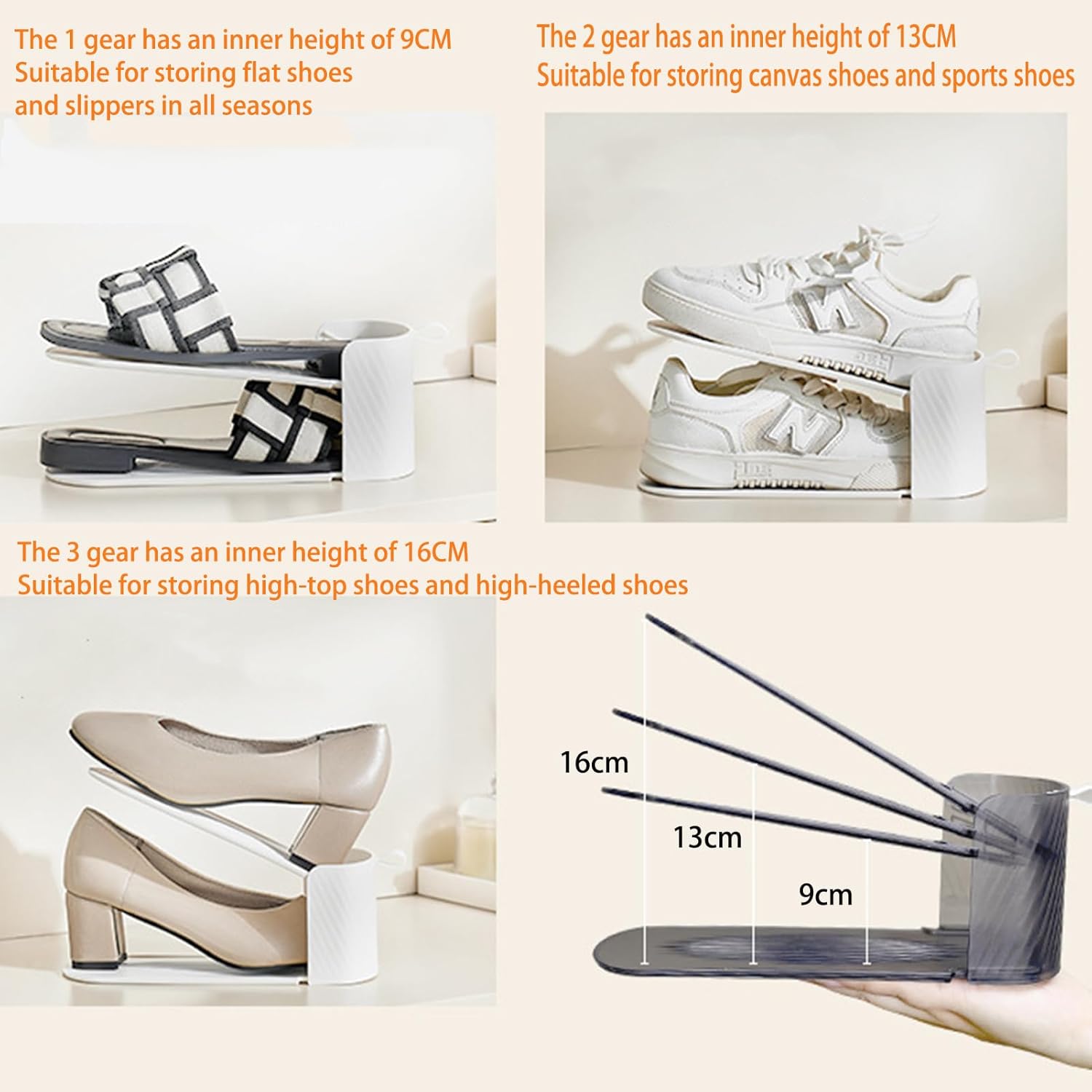 Product description shoe slots organizer for closetColor: Clear , Clear Blue , Clear Gray , Clear Green , Clear Yellow , Green , Pink , White , YellowPackage Size: 26×11×11cmMaterial: thickened PP plasticPackage including: 10 pieces of shoe slotsFeature:3 Levels adjustable: Sneakers, high heels, slippers and other shoe types- The 1 level has an inner height of 9CMSuitable for storing flat shoes and slippers in all seasons;- The 2 levels has an inner height of 13CMSuitable for storing canvas shoes and sports shoes;- The 3 levels has an inner height of 16CMSuitable for storing high-top shoes and high-heeled shoes;Save Spaceing:Adjustable shoe rackThe shoe cabinet is not messy and saves 50% space;Let's organize your shoe cabinet together. Manufacturer Contact Information 93843@qq.com Please go to our store homepage to see it.