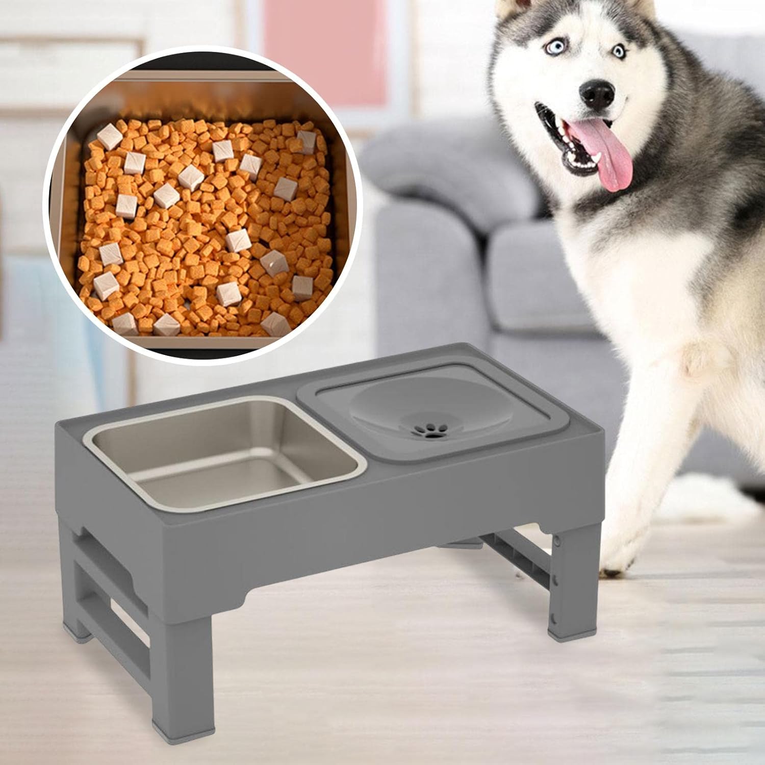 Description: - Features: Separated design very easy to clean, the surrounding tray design can effectively prevent food and water from being carried out of the tray, keeping clean and hygienic. - Detachable: Bowl and base stand can be taken apart. for your pets food and water.not easy to overturn. - DIY Height: 4 height adjustable. Can be to meet your pet's height. - Multi Purpose: Pet Food Bowl hold food, treats, and water, portable, practical, and . - Widely Used: Suitable for medium, small sized dogs, cats, kittens and other small pets to make feeding easier.Specification: - Material: stainless steelSize Chart:44cmx26cm/17.32inchx10.24inchhighest 28.8cm/11.34inchPackage Includes:1 Pet FeederNote:Please allow slightly errors due to manual measurement and different monitors.