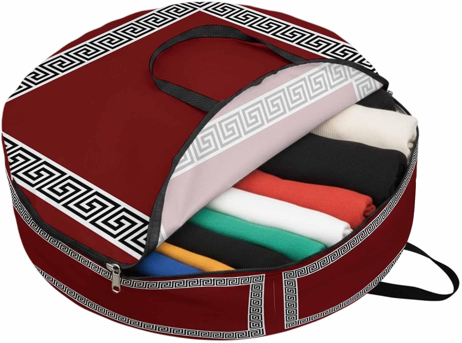 Reclaim Your Closet Space with the Round Storage Solution! Material: polyester Diameters: 24 inch, 30 inch, 36 inch Depth: 7 inches Package Includes: Round Storage Bag One Bag, Endless Possibilities: Whether you are swapping out your summer wardrobe, moving into a new dorm, or packing away holiday decorations, this bag has you covered. The circular design is uniquely suited for: Bedding: Comforters, quilts, sheet sets, and oversized pillows. Clothing: Winter coats, sweaters, and bulky ski gear. Home Decor: Holiday wreaths, garlands, and floral arrangements. Outdoor Gear: Camping blankets, sleeping bags, and beach towels. Dual Zippers: The high quality double zipper design allows the closet organizer to open wide from both sides, making it effortless to load and unload even the bulkiest comforters or wreaths. Reinforced Handles: Sturdy, reinforced handles are securely stitched to provide extra strength and a comfortable grip when carrying heavy loads or pulling the bag from under a bed. Clear Label Pocket: A transparent built-in label holder allows you to quickly identify the contents of each bag without ever having to unzip it, keeping your storage perfectly organized.