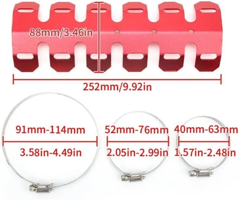 Function: Motorcycle exhaust pipe protective cover heat insulation cover, improve exhaust efficiency and optimize engine performance,has a beautiful appearance and keeps you cool.Exhaust Heat Shield For Motorcycle Bendable Exhaust Header Exhaust Heat Shield Motorcycle Exhaust Baffle Product name: Motorcycle exhaust pipe guardMaterial: metalColor: G, Red, BlackProduct listExhaust pipe guard set x11.Safe Material: Made with metal, this exhaust pipe guard boasts excellent scratch , keeping your motorcycle safe and secure .2.Reduces Heat Accumulation: Our motorcycle exhaust pipe guard features a flexible design that reduces heat accumulation while maintaining the best performance of the exhaust pipe.3.Ease of Installation: No particular equipment needed for setup, saving valuable time for effortless installation. 4.Distinctive Design: Colorful and multi-color options, including classic black, cool blue, and bright red, enhance the overall grade of the motorcycle.Stability: Motorcycle Exhaust Pipe Collision Protection Improves motorcycle performance and makes it more reliable on all terrains,also a beautiful decoration for the exhaust pipe.