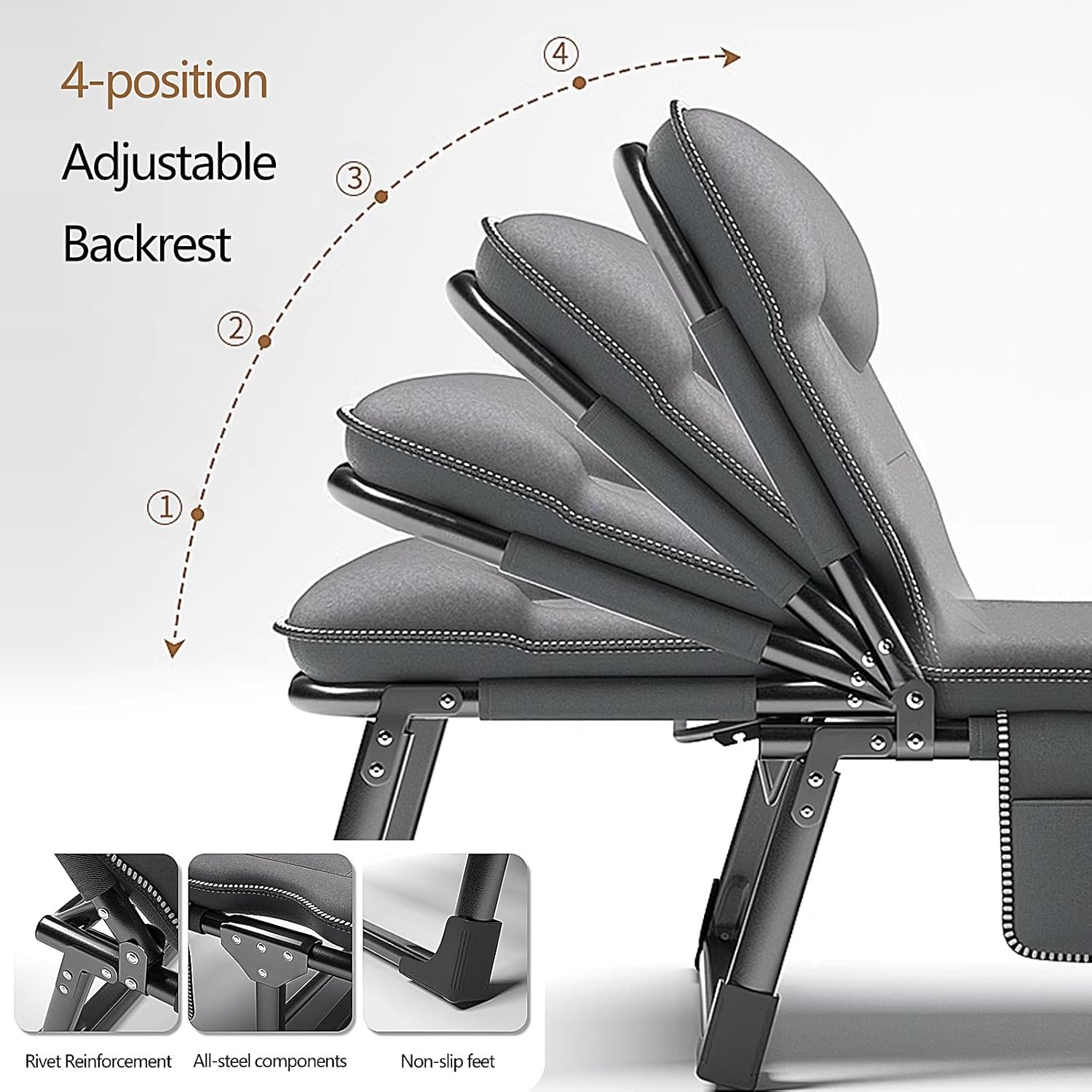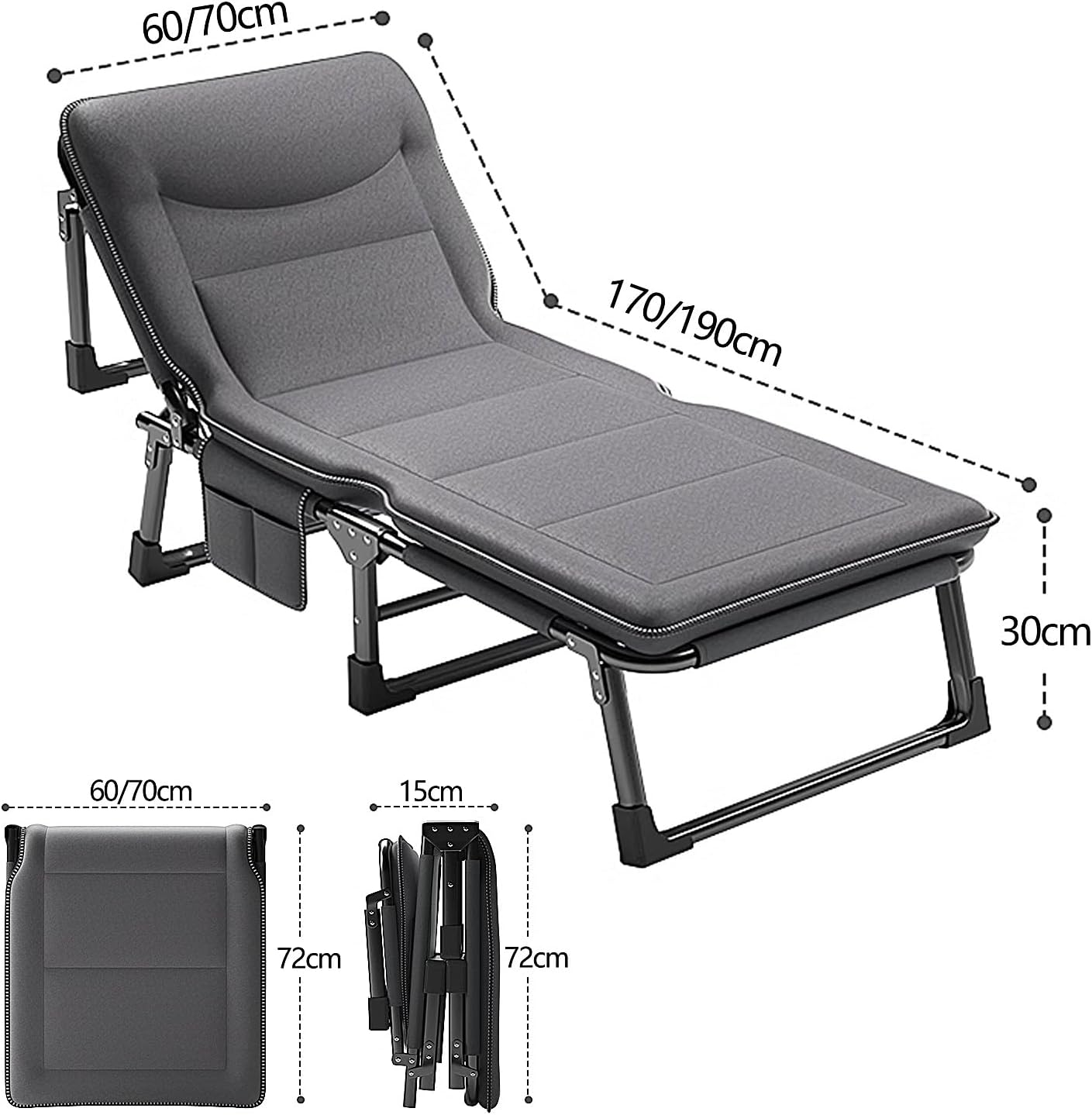 Folding Camping Bed:Whether you're setting up camp or relaxing in your backyard, the fold up bed offers an ideal place to rest and relax after a long day. This portable folding cot seamlessly adjusts between four back positions ranging from upright to flat. Made of high qualitys cotton and linen fabric/suede fabric, doll cotton filling, and 1600D oxford fabric, this fold up bed uses a durables 25mm steel frame to withstand larger weights and stand up to season after season of rugged use. And thanks to its tri-fold design, this camping cot folds easily and fits inside most car trunks. The bed surface of the fold up bed is widened and thickened, so that you can freely turn over, no constraints and no rattling, and the increase in the contact area makes the force uniform and smoother, bringing you the most comfortable enjoyment. Specification: Color: Gray Material: steel, cotton and linen fabric, suede fabric, 1600D oxford fabric, doll cotton padding Size: 170*60*30cm, 190*70*30cm (L*W*H) Folded size: 60/70*15*72cm (L*W*H) Weight: 6kg, 7kg Blanket weight: 1kg A-cotton linen model, B-suede model, C-cotton linen model + blanket, D-suede model + blanket