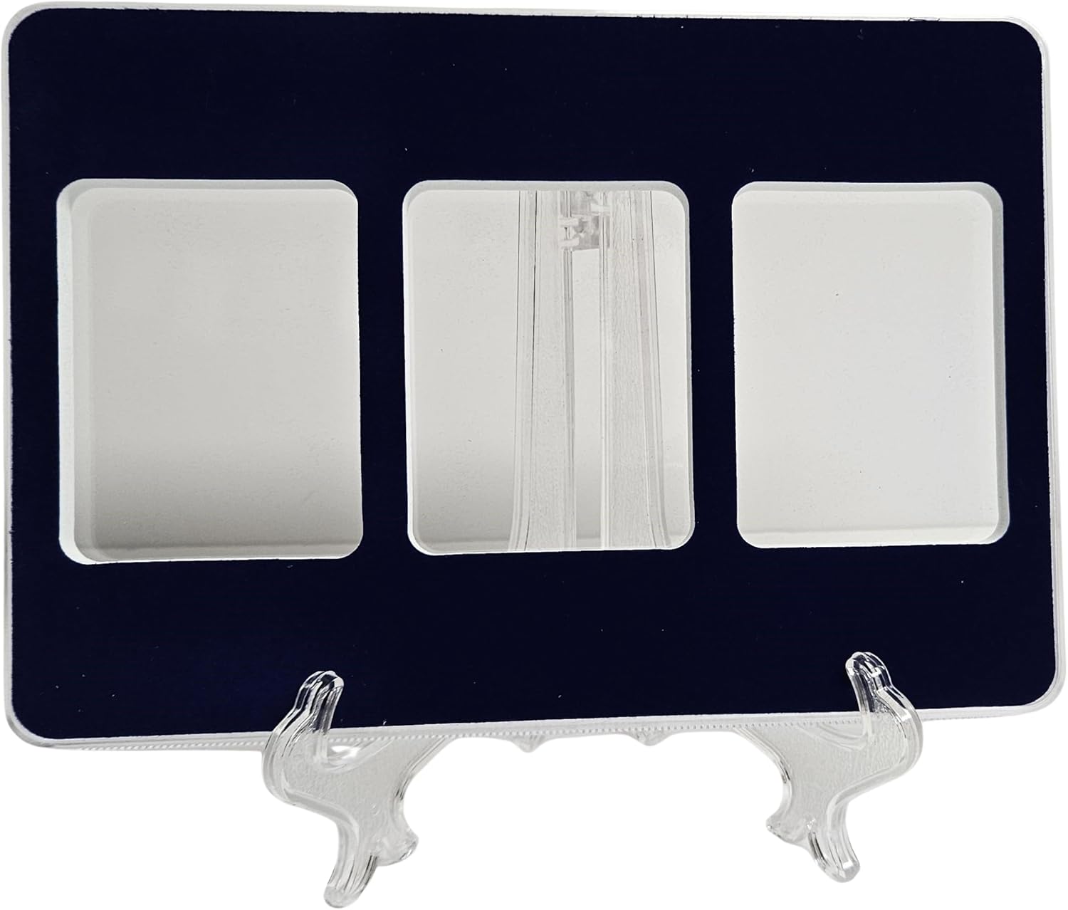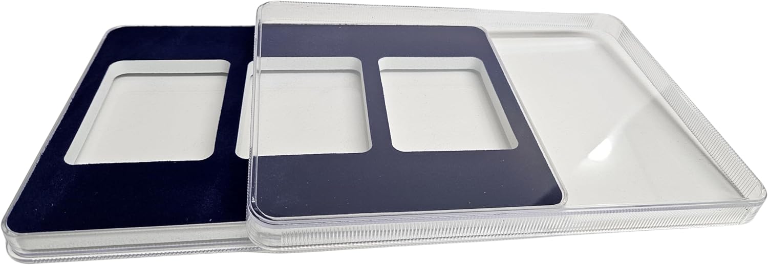 This high-quality storage case is perfect for keeping your valuable coins safe and organized. Made from durable Acrylic PMMA material and featuring a clear transparent design, this case allows you to easily view and display your coins without having to remove them from their slabs. Included are 3 certified slab holders with 21mm translucent inserts ro hold your Jefferson, Buffalo and Liberty Nickel Coins . Labels are also included. The transparent design allows viewing obverse and reverse of the coin. Reversible from blue to white. Designed to fit PCGS slabs, this case is suitable for a wide range of coin types and sizes. With a sturdy construction this case will help ensure that your coins remain in pristine condition for years to come. Whether you're a serious coin collector or just looking for a safe way to store your coins, this storage case is the perfect solution. Includes stand. Coin pictured is not included - for display purposes only.