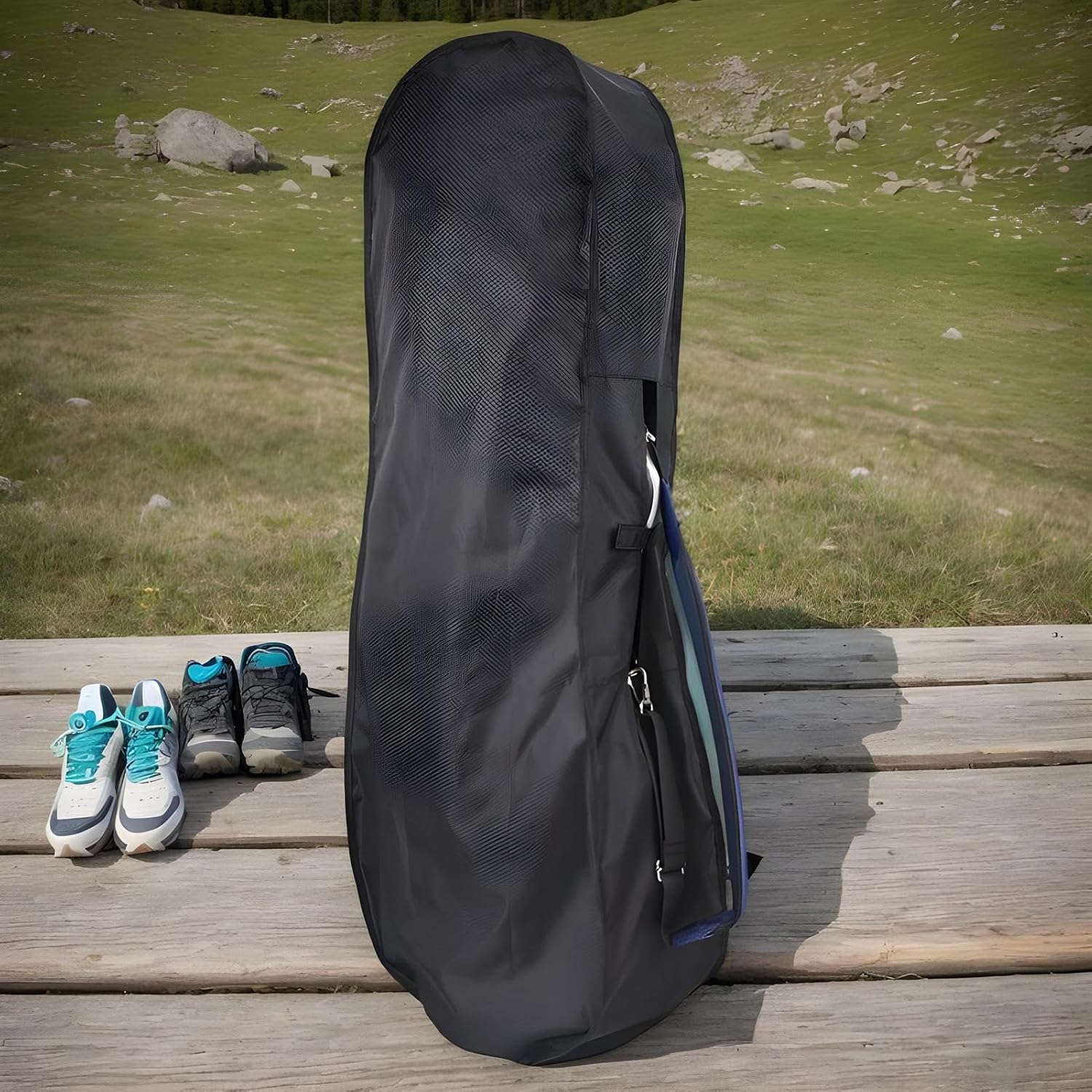 The Golf Rain Hood is designed to protect golfers from unexpected weather changes during their golfing activities. This waterproof and dustproof cover ensures that your golf bag stays clean and dry in any condition. Suitable for both women and men golfers, it serves as a necessary case for those who love spending time on the green. Whether you are a dedicated daddy golfer or a casual player, this rain hood provides reliable protection while enhancing convenience. Use it confidently when golfing in rainy or breezy environments, keeping your gear safe and ready for action at all times. Its practical design makes it a must-have accessory for every enthusiast committed to enjoying uninterrupted rounds outdoors.SpecificationMaterial: Oxford clothProduct size: about 48x23x128cm/18.9x9.06x50.39 inchesSize after storage: about 28x6x25cm/11.02x2.36x9.84 inchesProduct weight: 510gProduct List:1 * Golf Bag Rain CoverNote:Due to different lighting and screen settings, the item color may be slightly different from the picture.Due to different manual measurements, please allow a 1-2cm difference in size.