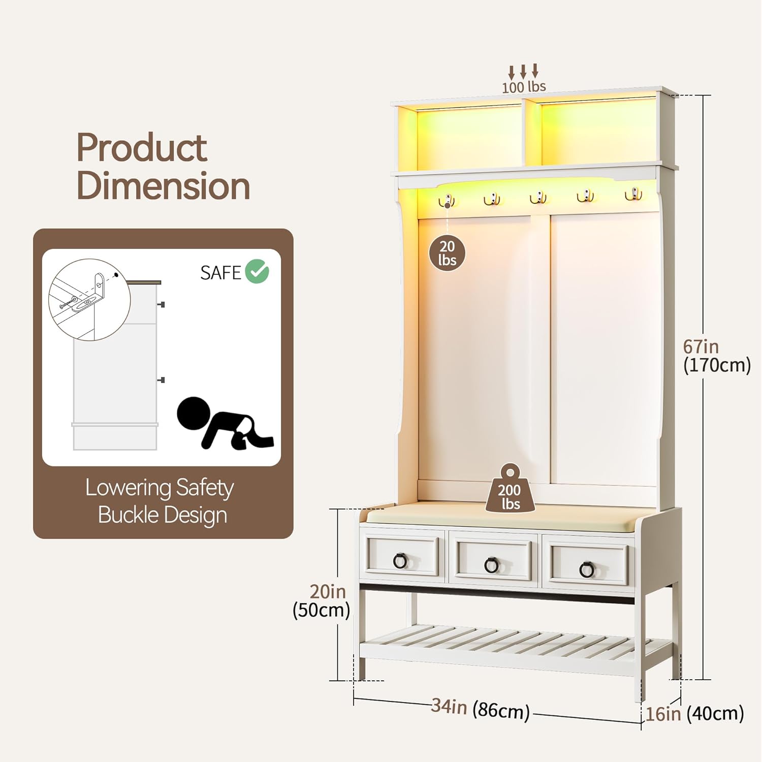 | Size | 35”L x 16”W x 67”H |