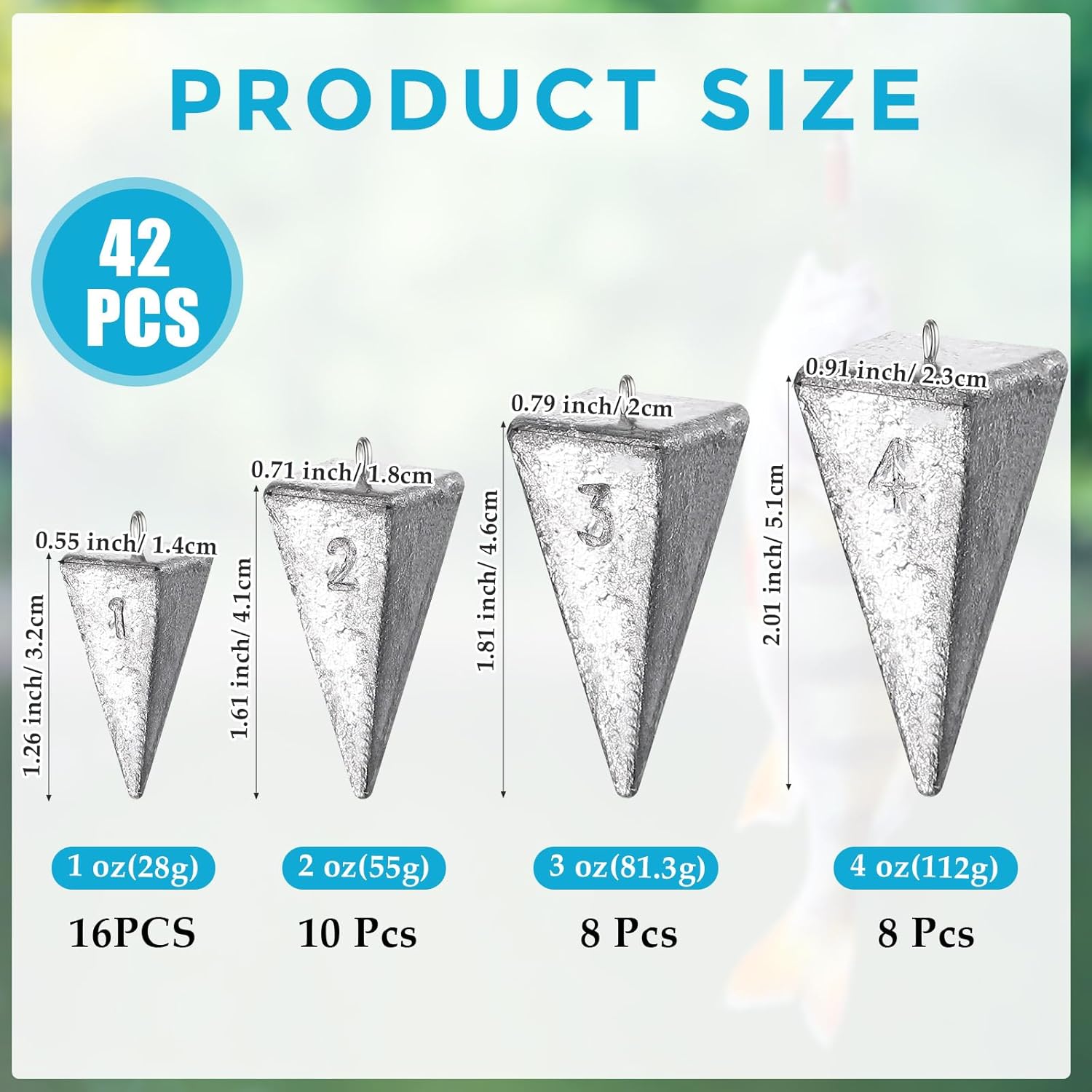 | Included Components | 42 x Pyramid sinkers |