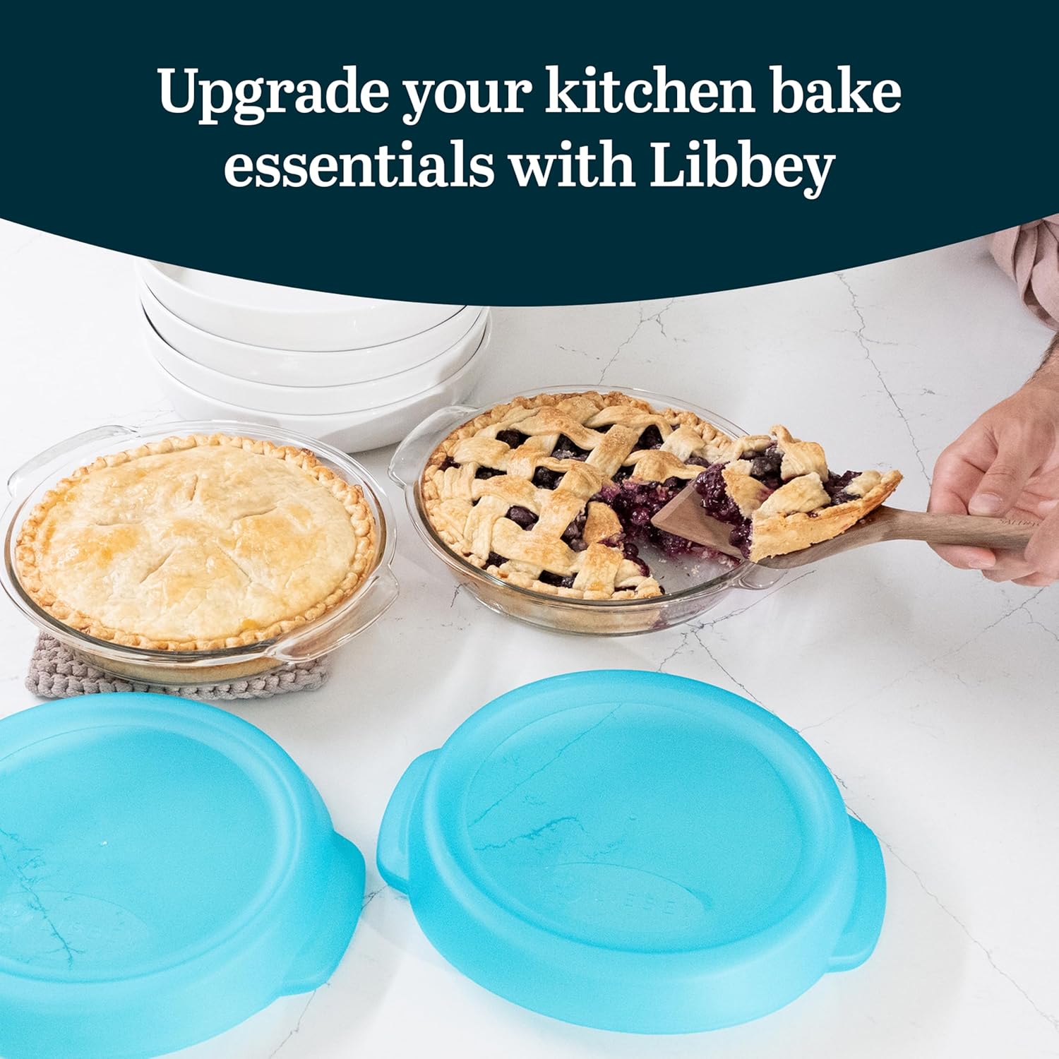 Libbey Baker’s Premium 2 Piece Glass Pie Plate, Stackable, Space Saving Casserole Dish Set with Lids, Glass Baking Dish Set for Fruit Pies, Quiches