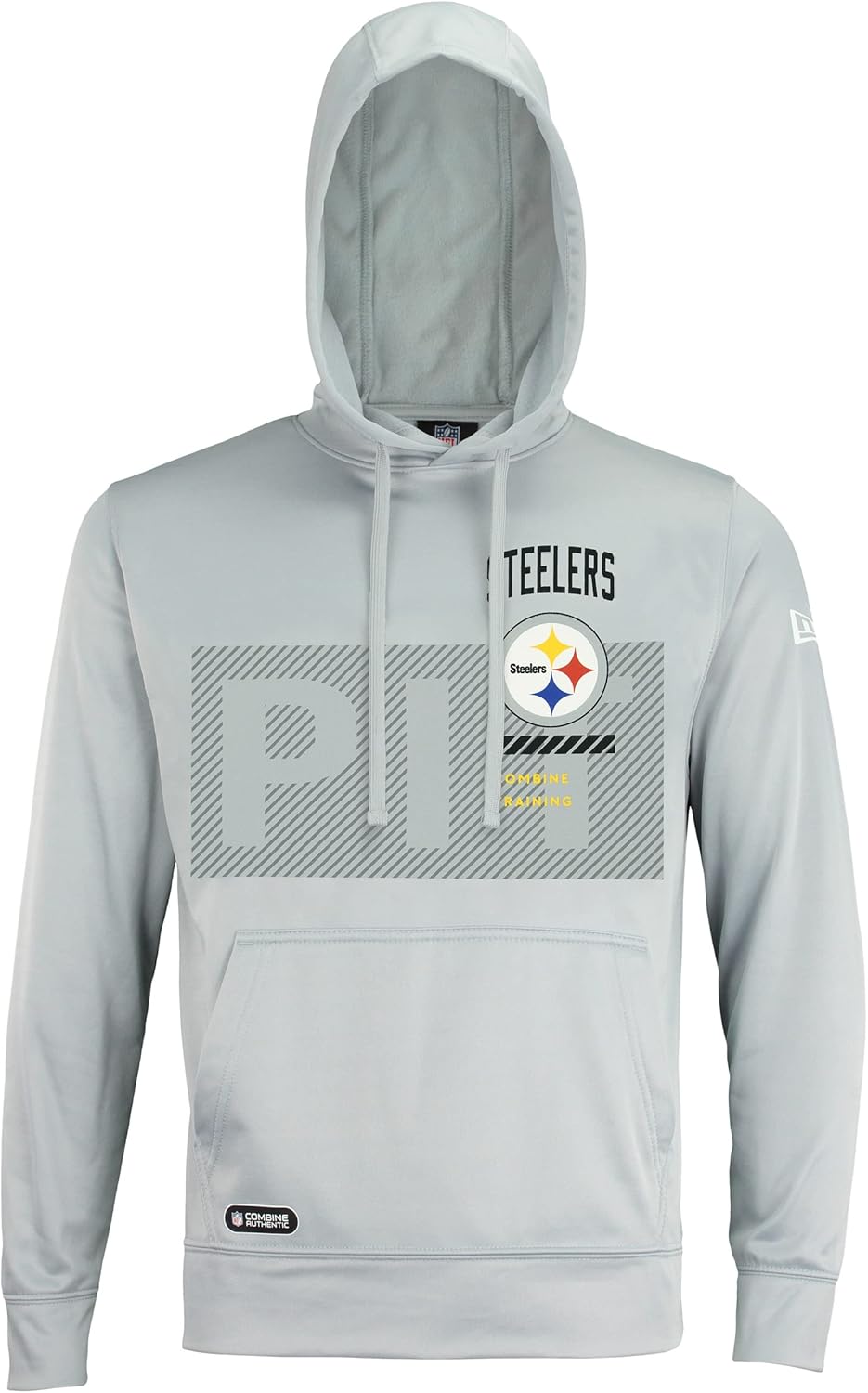 Stay warm and stylish while supporting your favorite NFL team with the New Era NFL Men's Drill Performance Cool Grey Pullover Hoodie. Made from 100% polyester, this hoodie offers superior comfort and durability. Featuring performance technology, it keeps you cool and dry during intense workouts or game days. Perfect for any football fan, this pullover hoodie combines functionality with team spirit.