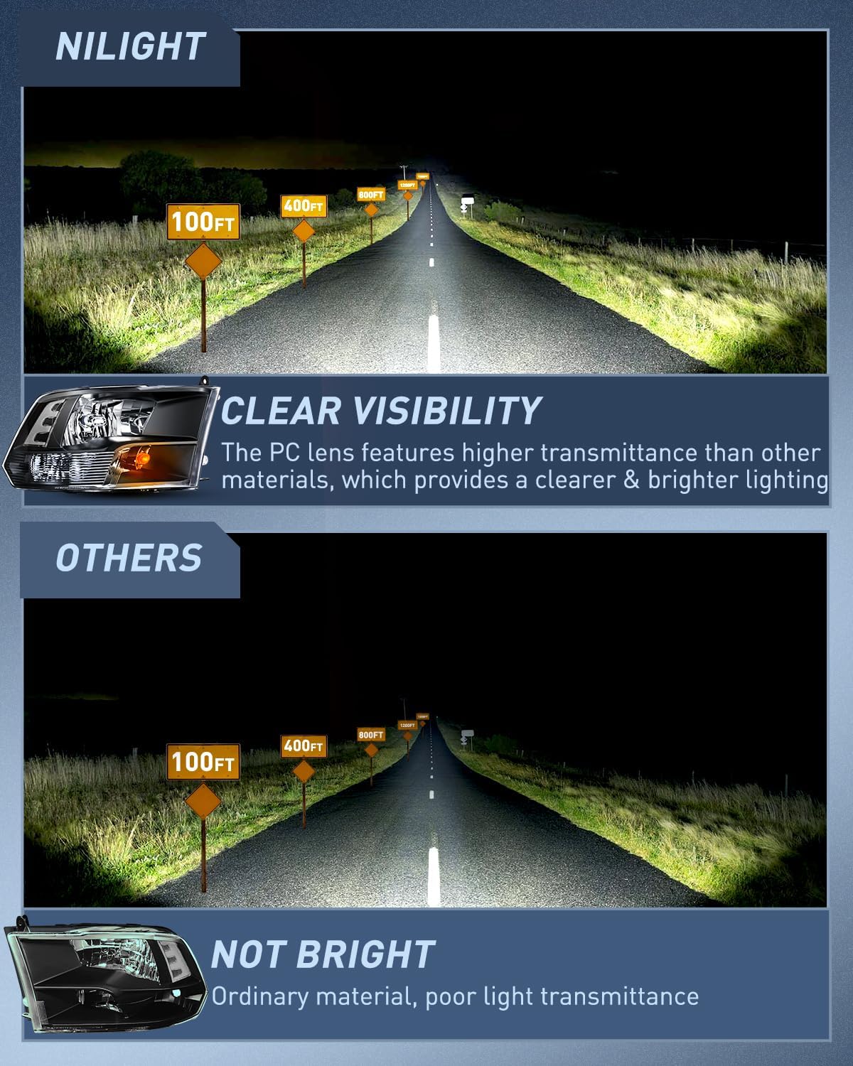 | Item Type Name | Nilight Headlight Assembly 2009-2018 Ram 1500 2500 3500 4500 5500 Black Housing Clear Corner Clear Lens, Headlights Assembly Replacement, Driver and Passenger Side |