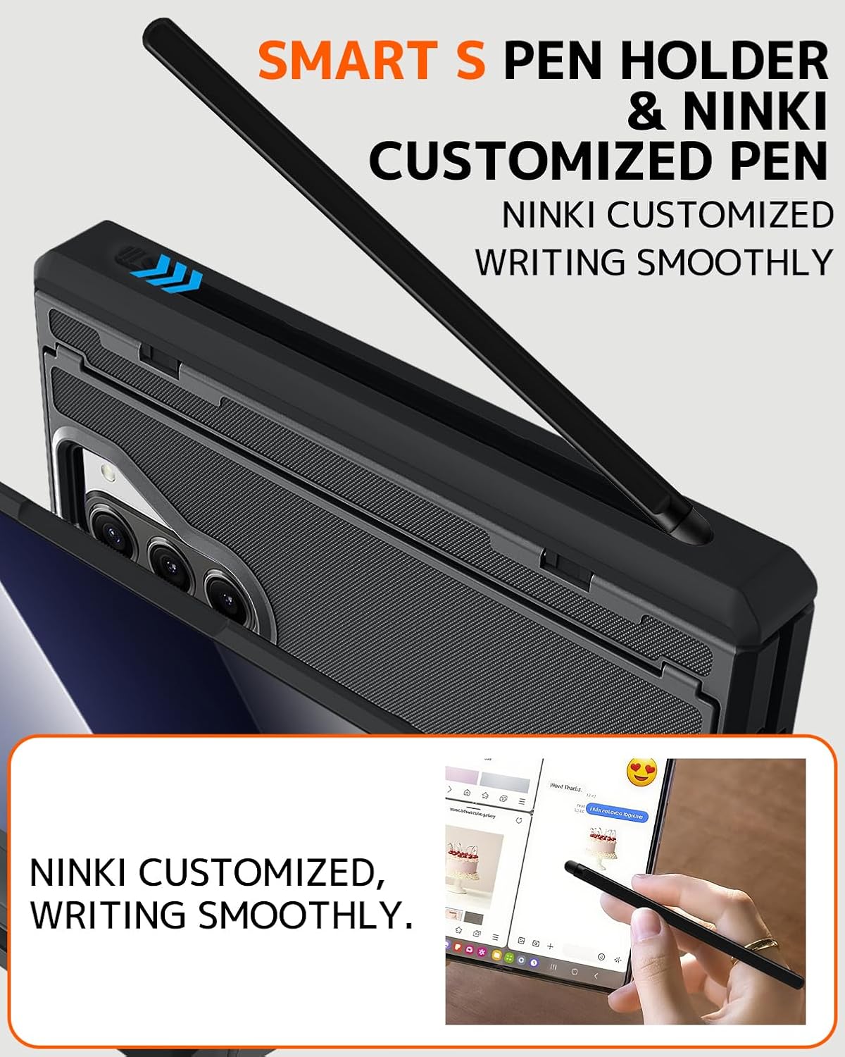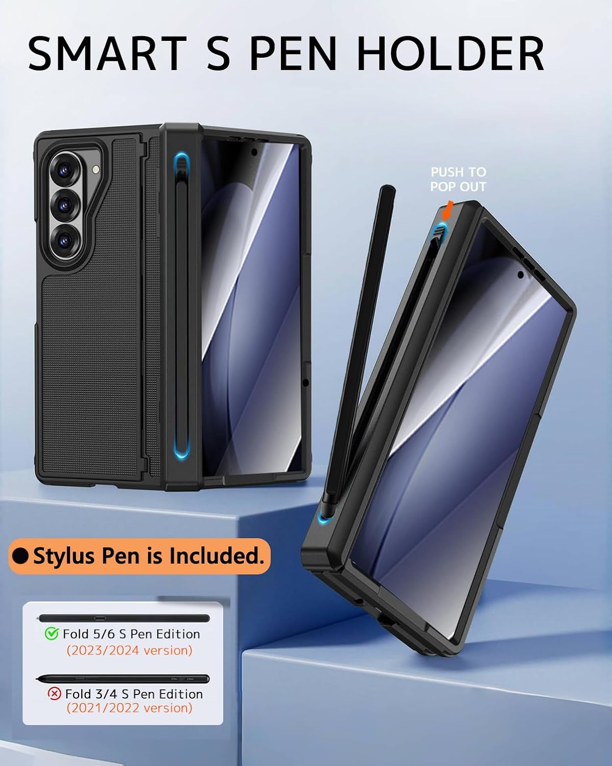 | Additional Features | Stylus Pen and S Pen Holder, Hinge Cover, Hidden Kickstand, Built-in Screen Protector, Shockproof, Anti Slip Textured, Anti-Scratch, Anti-Fingerprint , Support Wireless Charging |