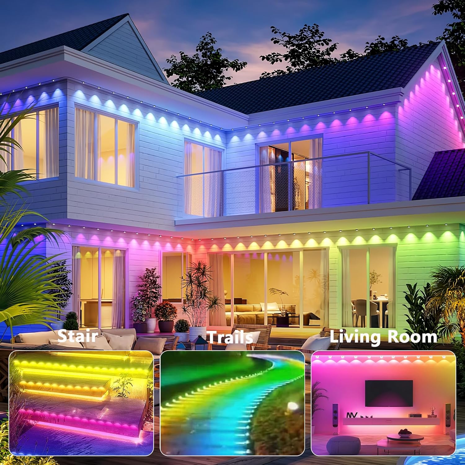 • 【Music Synchronization Function】Permanent Christmas lights have a built-in music rhythm function that changes the lighting effects according to the rhythm of ambient sound adjustments, perfect for streaming, enhancing the atmosphere of parties and events, and adding more fun to outdoor spaces. Whether you prefer vibrant pulsing light or subtle ambiance, our light strips offer a variety of options to enhance the functionality of your space while making a style statement.
