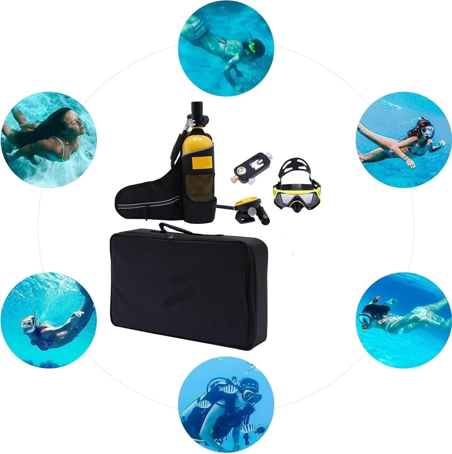 Scope of applicationSuitable for professional divers, fishermen, novice divers, amateur divers, firefighters, lifeguards, etc. as underwater emergency back-up equipment or short-term diving equipment, vacation diving, river and sea emergency, underwater adventure, boat cleaning, back-up air source and other purposes.Package Includes1* Diving cylinder1* Backpack strap1* Scuba adapter headAttentions.1.We don't recommend this equipment for diving without diving license. It is forbidden to use this equipment alone when diving, you must work together as a team to prevent accidents.2.Please store the product in a cool and dry place, avoid direct sunlight or store it in the trunk of the car or in a place where the temperature is too high.3. Please check the product in time when you receive it, and contact us if you find any quality problems. Every time you use this diving equipment, you need to check it in advance to ensure safety.4.The maximum dive depth of this product is 32.8 feet, and the air pressure of the diving bottle should not exceed 3000PSI/200Bar/20MPA.The dive time depends on the individual's lung capacity and diving breathing rhythm as well as the dive depth. After each use, please rinse it off and store it in a dry environment.5. Before filling, please tighten the pressure relief valve and open the valve switch of the cylinder. After inflation, please release the pressure first, then open the inflation port and close the valve switch of the cylinder. Do not store gas in the cylinder for more than 48 hours. Open the valve switch before use.