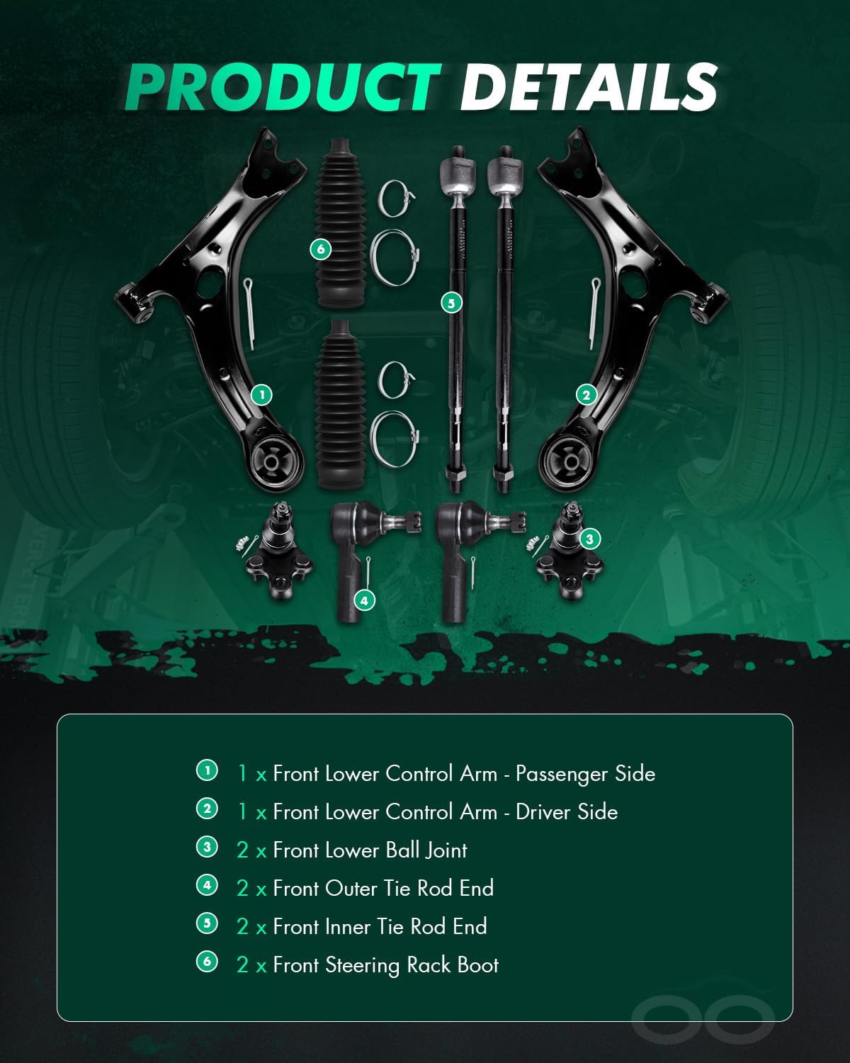 | Included Components | 10pcs Front Suspension Kit Lower Control Arm Lower Ball Joint Outer Inner Tie Rod End w/Boot Replacement for 2003-2008 for Pontiac Vibe 2003-2008 for Toyota Matrix |