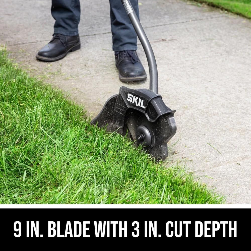 Enhance your lawn care game with crisp, clean edges using the SKIL PWR CORE 40™ 9 In. Edger Attachment. This universal attachment for the SKIL Power Head system includes a 9-inch blade with up to 3 inches of cutting depth for edge work along sidewalks and flower beds. An adjustable depth guide wheel delivers precision while a debris shield keeps you safe and reduces the mess from flying grass clippings, mulch, and dirt.