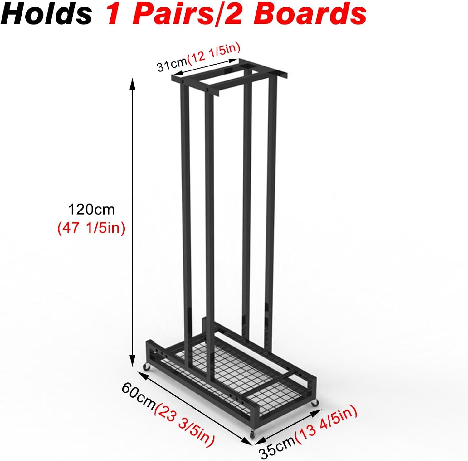 Still worrying about scratches between your precious skis?Are you looking for a great looking storage rack that is sturdy enough for your ski and snowboard equipment?Our storage rack provides dedicated slots for each pair of snowboards, ensuring perfect organization.● Specifications- Material: iron - Frame Color: Black- Height: 120cm (47 1/4")- Width: 35cm(24 2/5in), 62cm (24 3/8"), 93cm (36 5/8"), 124cm (48 7/8"), 155cm (61")- Depth: 60cm (23 5/8")- Whether to Assemble: Yes● Features- The freestanding Individual slots isolate each ski pair to prevent scratches and damage.- Smooth-rolling casters enable effortless mobility even when fully loaded, for easy to move anywhere.- High strength metal iron can be used for a long time.- Space-saving and keeps the floor tidy.- The ski shelf easy to assemble and use. Effortless!- For sport equipment organizer, garage organization.- The stand to maximize floor space while keeping your home tidy.- Clean modern aesthetics complement home interiors beautifully.- Perfect for garages, apartments, cabins, and retail displays.● Package includes:- 1 x Ski Storage Rack (Excludes items shown on pictures)● Note:- Manual measurement, product size and physical may exist 1 ~ 3 cm error.- Products are taken in kind, but due to light, equipment, shooting angle and resolution of the computer, the received physical and photos may be different, in kind prevail.