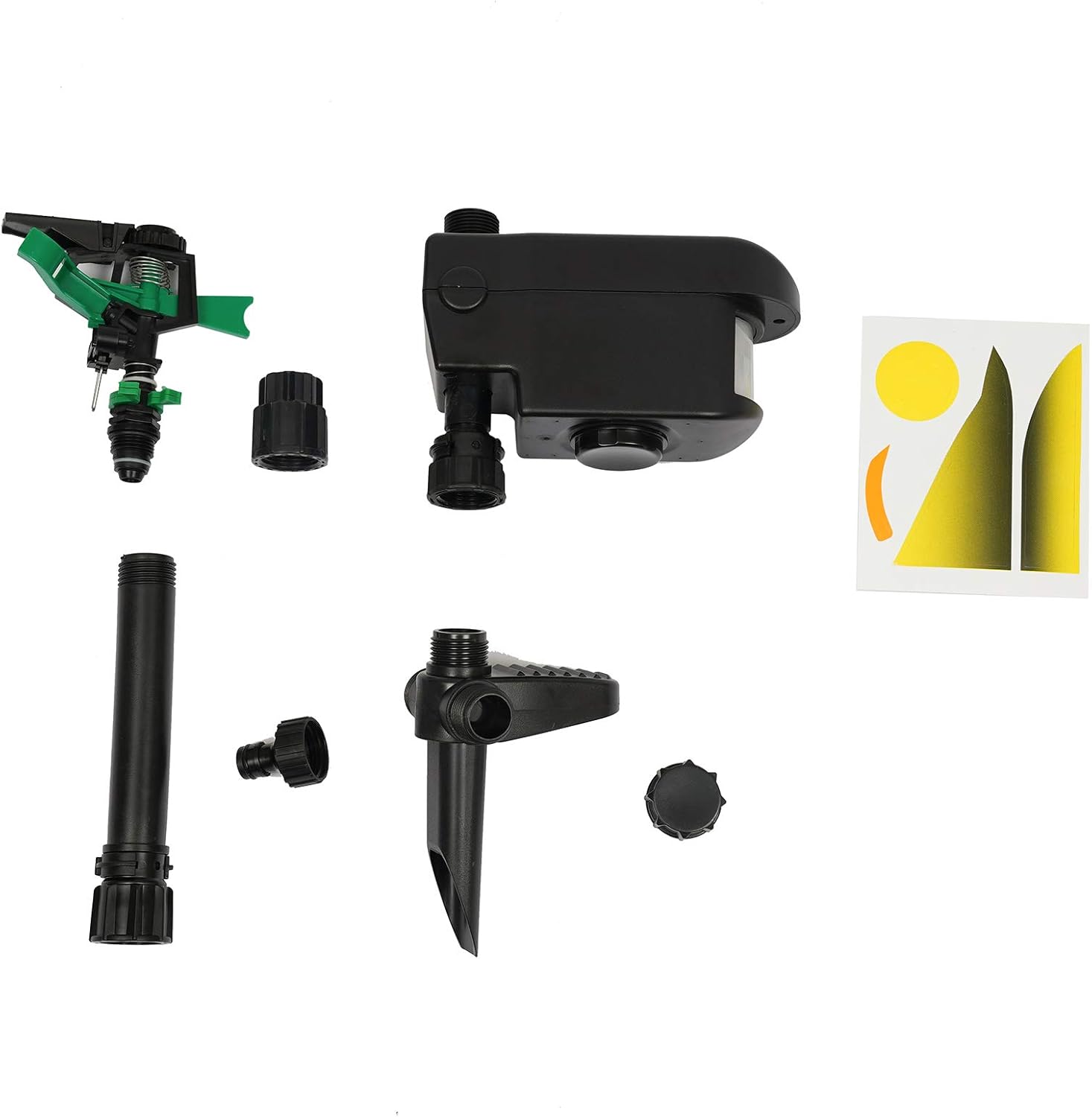 Feature:Detects and sprays both day and night up to 30 feet away (1000 sq. ft area)Sprinkle water when moving objects are detected, safe and effectiveSolar energy battery included, save money and safeSimple to operateHigh quality and brand newProtect your property in a human wayEmploy the high technology motion-activatedSpecifications:Material: ABSOverall dimension: 7.4"x3.1"x25.2"(LXWXH)Protecting range: 30feet, 1000 sq. ft areaProduct weight: 0.66kgPackage include:1 x stake top1 x stake bottom1 x optional decal sheet1 x sprinkler1 x flow through cap1 x sensor housing1 x quick connect coupling