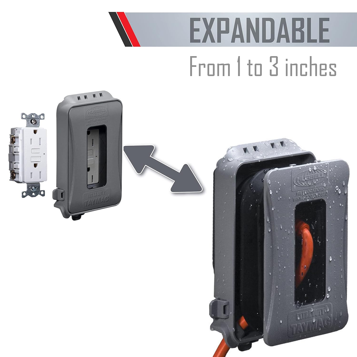 EXTRA-DUTY PROTECTION FOR YOUR ELECTRICAL OUTLETS Get maximum toughness and protection from weather hazards with our 1-Gang Weatherproof In-Use Electrical Outlet Cover. This essential tool for home improvement is EXTRA DUTY rated and UL listed for wet and damp locations so you can maintain safe operation of appliances and devices. Our weatherproof outlet cover uses our Universal Fit Adapter System Technology for several custom device configurations. This enables you to mount and protect duplex outlets, switches, round outlets, and GFCI outlets with this preconfigured box. QUALITY PROTECTIVE DEVICES Get the hardiest shielding over the vulnerable points in your electrical system. Our socket cover for outlets is built from high-impact polycarbonate for maximum durability. You also have more room for electrical cords to follow prudent practices. The set even includes gasket and mounting hardware for convenience so you don't have to shop around for additional tools and fittings. Our weatherproof cover is tested and certified to UL and NEMA standards. QUICK INSTALLATION Set up your outdoor outlet cover in no time at all. Our Quick-Fit keyhole mounting system allows mounted installation in under a minute. With the proper tools and setup, you can refit all of your outdoor electric boxes with the necessary weatherproofing to ensure safe and continuous operation. Get your Extra Duty 1-Gang Weatherproof In-Use Electrical Outlet Covers today and provide the necessary added protection to your electrical fixtures.