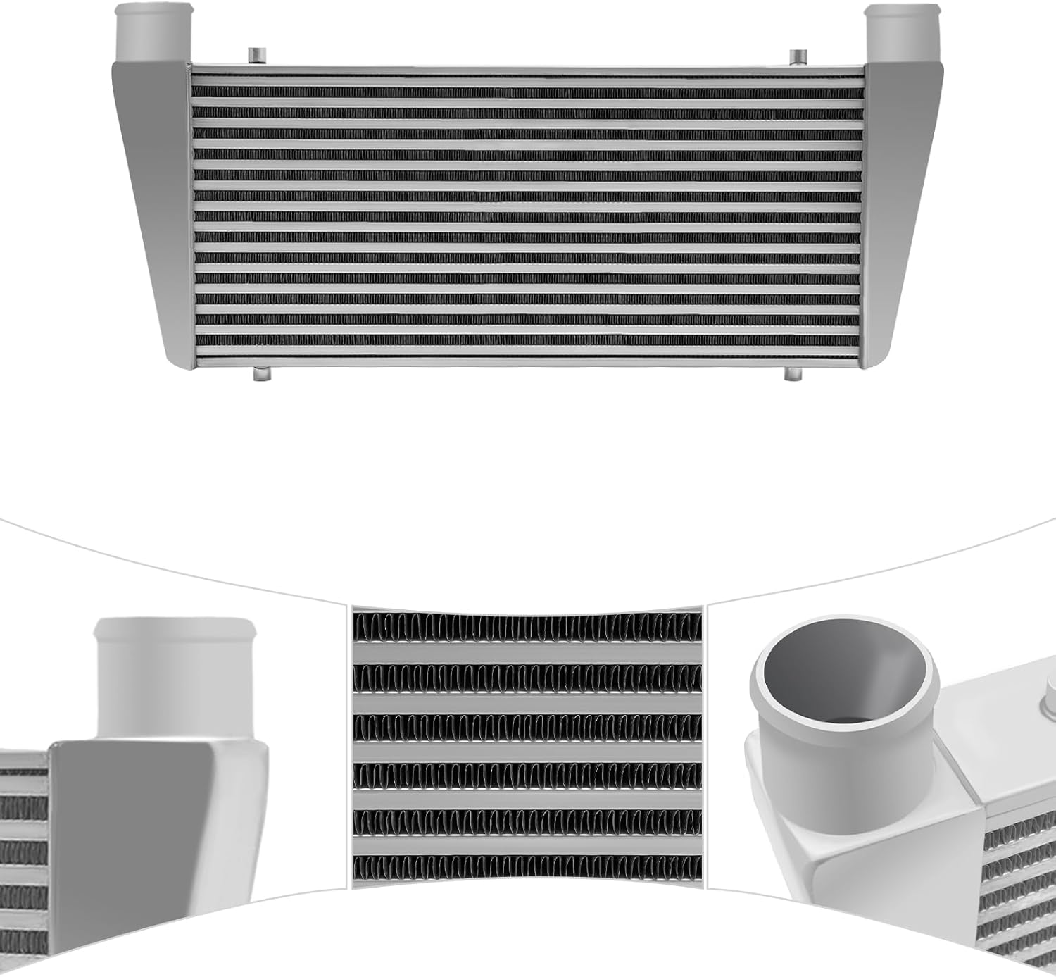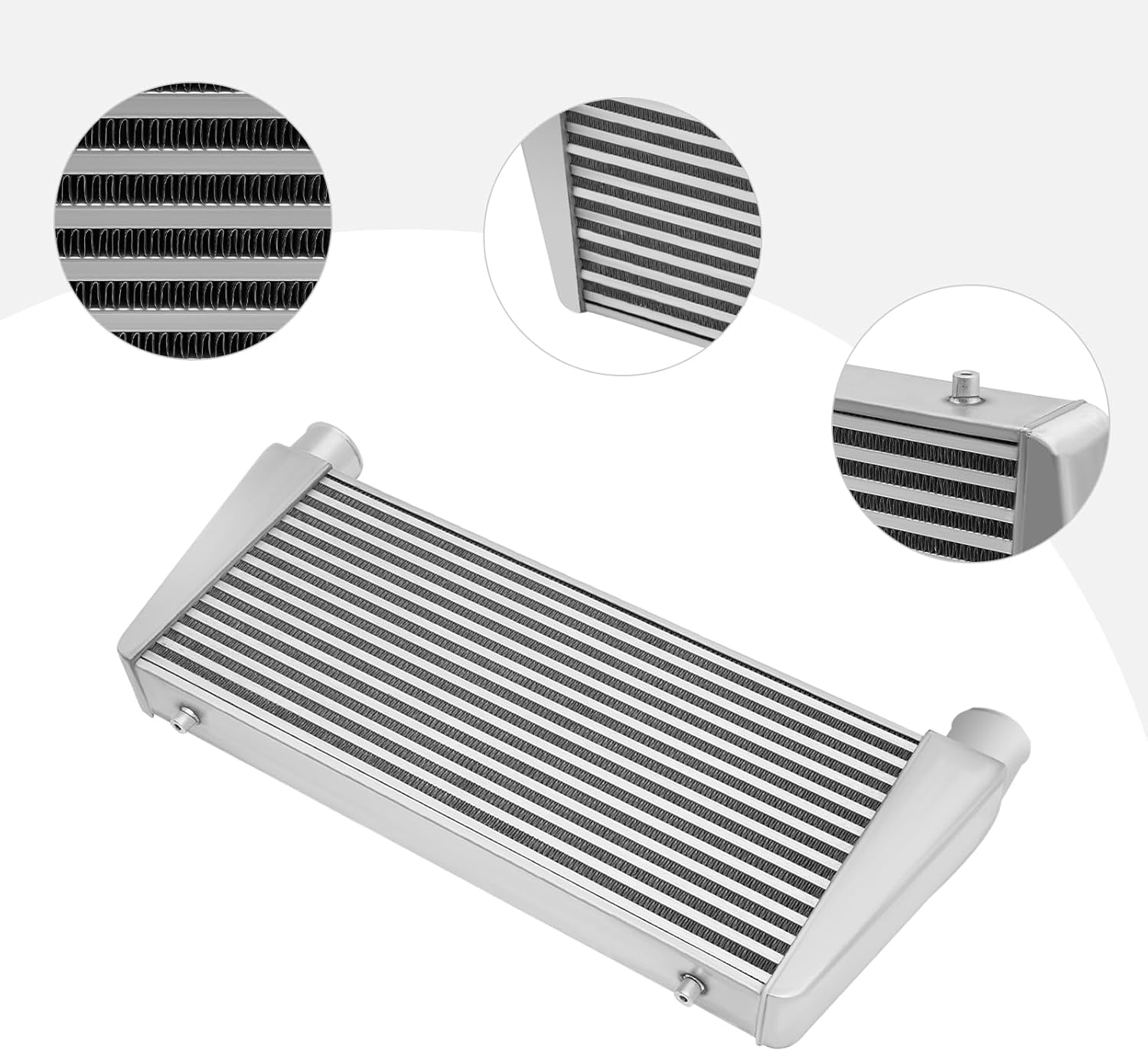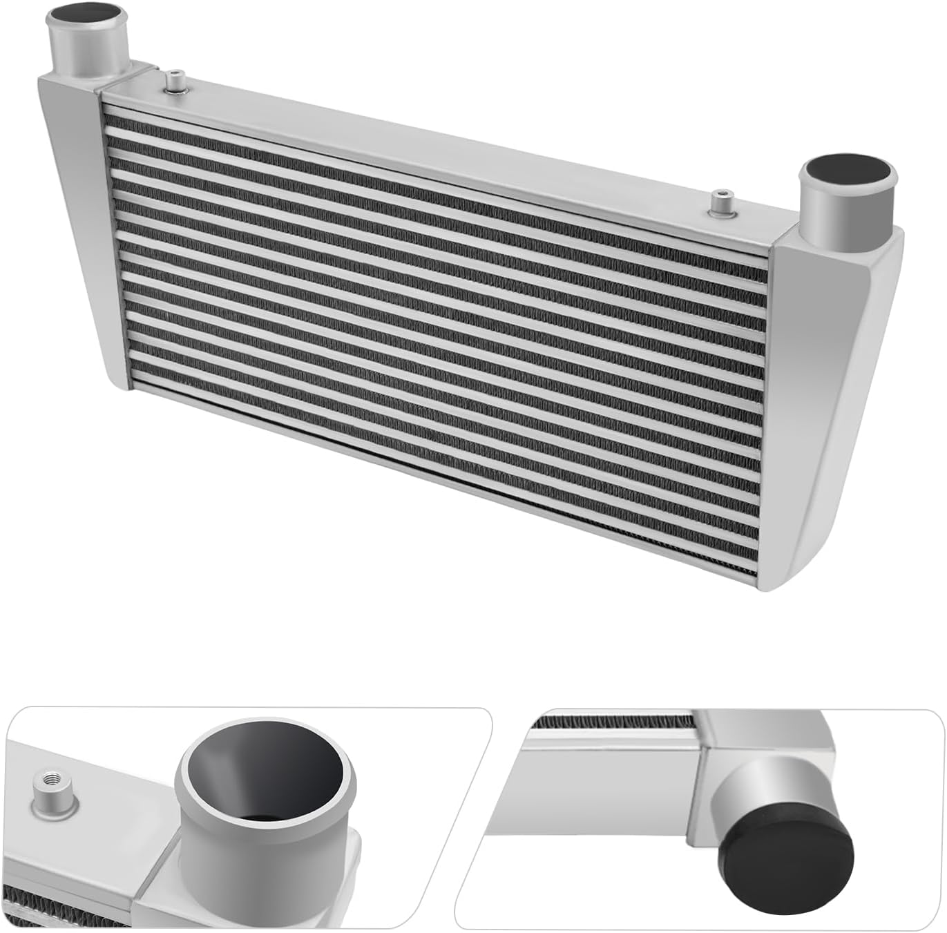 Specifications:Applicable Models: Universal Fitment -DIRECT BOLT ONCondition: NewColor: SilverShape: RectangularNumber of Items: 1Material: AluminumSurface Treatment: PolishingInstallation Position: FrontWay of Use: Direct Replacement Assembly Method: ClosedInlet and Outlet Diameter: 6.35cm/2.5inOutlet Size: Inner Diameter: 6.35cm/2.5" Outer Diameter: 6.35cm/2.5"Overall Size: 74.93*33.66*6.99cm/29.5*13.25*2.75inchCore Size: 61*28cm/24.0*11.0inchGross Weight: 5.4kg/ 11.9 lbsPackage Size: 77*38*11cm/ 30.3*15*4.33 inNotes:1.We strongly recommend professional installation. Please contact us if you have any questions.2.Please note that pipes, clamps, or couplers are not included.2. Please allow the slight color difference caused by the shooting light and 1-3cm error due to manual measurement, and make sure you do not mind before you place the order.Fits (As a Reference):For All CarsPackage Included:1*Intercooler