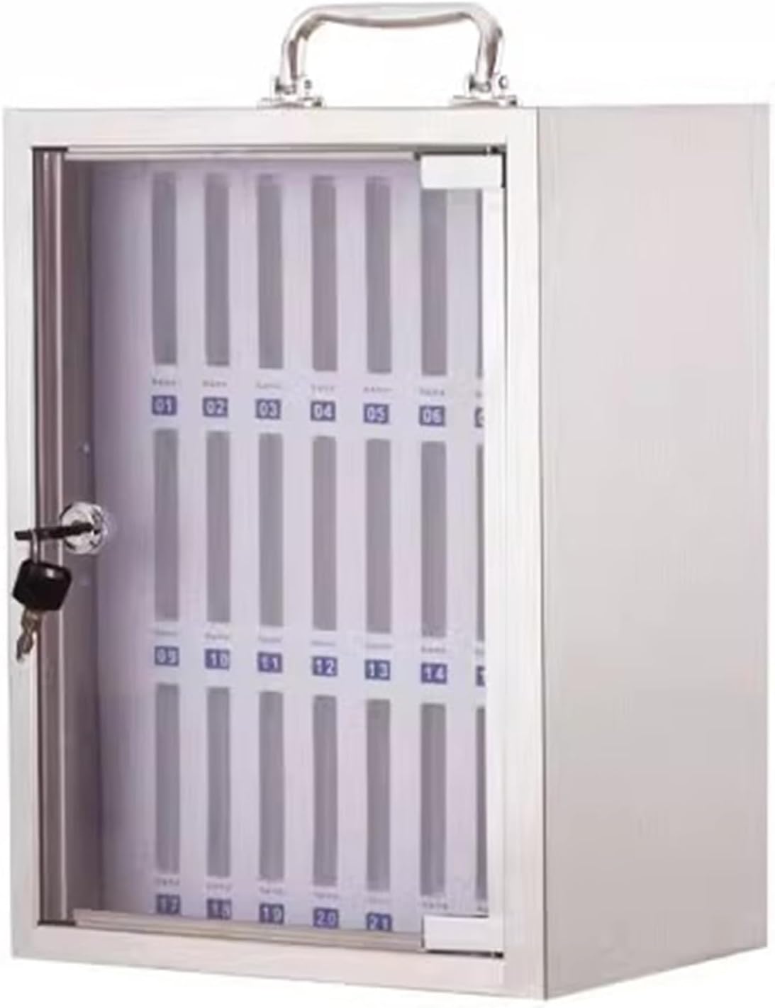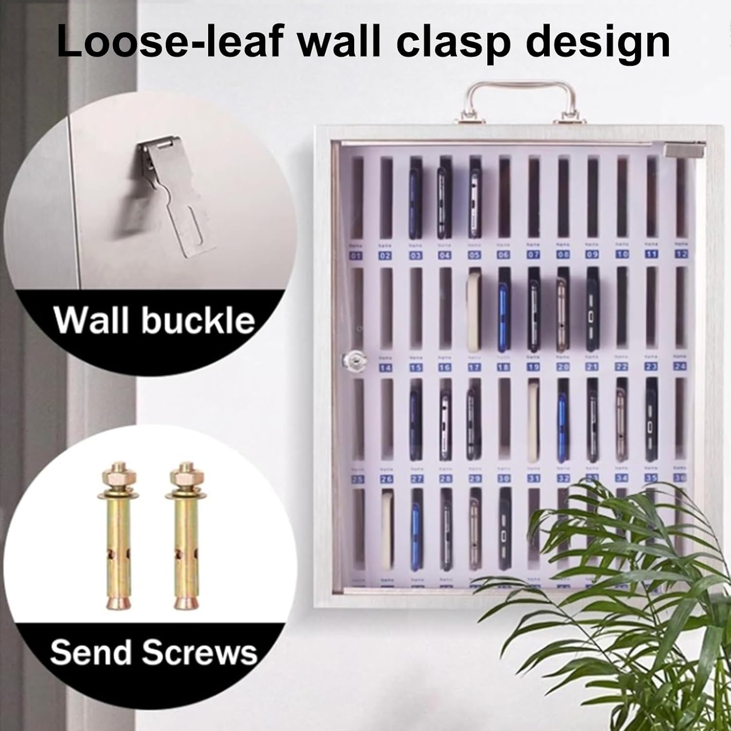 【Product Description】☂ Are you looking for a practical solution to manage phone usage in classrooms or offices? Our Mobile Phone Storage Cabinet offers a versatile design that can be handheld, wall-mounted, or placed on a desktop, accommodating up to 12 mobile phones at once. The spacious slots are compatible with all smartphone models, ensuring everyone can participate without distractions.☂ This mobile phone storage solution is specifically crafted for educational and professional environments. By securely storing students' or employees' mobile devices, it promotes concentration and enhances the learning experience while simplifying the teaching process for instructors.☂ Featuring independent compartments separated by soft pearl cotton material, our mobile phone safe provides excellent anti-scratch protection, safeguarding each device from damage during storage. This thoughtful design ensures that all phones remain secure and in optimal condition.☂ With multiple compartments, this storage cabinet streamlines management and access to devices, making it ideal for conference rooms, factories, training centers, and other settings where centralized phone storage is essential. Experience the convenience of organized phone storage and improved focus in any group setting.☂ Rest assured, we prioritize quality. Each product is carefully packaged with cushioning materials to prevent damage during transit, ensuring that your mobile phone storage cabinet arrives in perfect condition.【Product Parameters】△ Product Name: Mobile Phone Storage Cabinet△ Material: Aluminum Alloy△ Installation Type: Wall-mounted/Desktop△ Number of Slots: 12/24/36/48/60△ Dimensions: 21.5 cm x 19 cm x 25 cm (L x W x H)△ Color: Silver【Packing List】Mobile Phone Cabinet *1