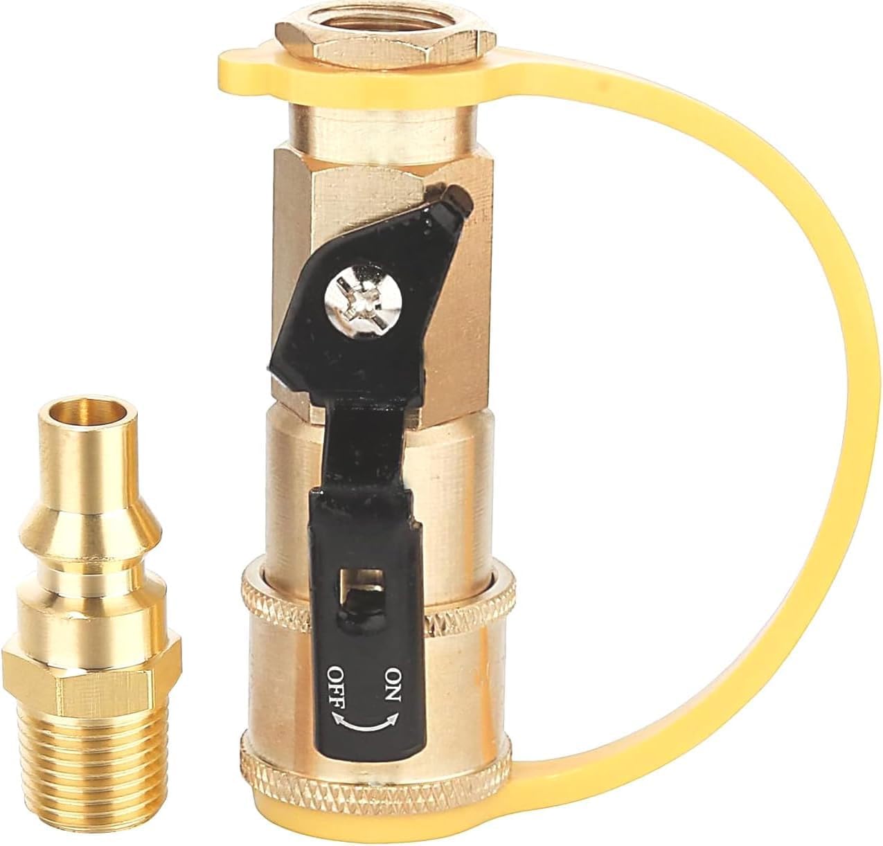 GRILLJOB 1/4" RV Propane Quick Connect 2 Way Adapter with Shutoff Valve for RV Trailer and Quick Connect Propane Hose Connect to Motorhome Tabletop Grill, Y Splitter 1/4 inch Quick Disconnect Kit [2 Way Quick Connect] - RV Propane Quick Connect 2 Way Y-Splitter: 1/4" male quick connect to 1/4" standard quick connect x 2, with dust proof cap, allows working with two gas appliance at the same time. [ Shut-off Easily] - Propane quick connect splitter equipped with a shut-off ball valve on both female sides, no fear of leaking even you are only using one female connect. hose Y splitter with shutoff [Wide Application] - Perfect for your RV’s low pressure system, RV Grill, motorhome BBQ tabletop porch heater, and gas fire pit camping stove. Easily connects on two 1/4" plug hose. 1/4" rv propane quick connect y splitter [ Install Easily] - The 2 way RV propane quick y connect fittings design to install easily, no tools needed and easy to hookup. perfect for for using to low pressure propane supply on RV or trailer, good choice for gas grills, heaters, motorhome BBQ, smokers, camping stoves, flashlights, turkey fryers, and other propane appliances. [Solid Brass Constructions] - This propane 2 way propane adapter made of solid brass for durability and reliability, allows you to connect two propane quick connect hoses on RV's tabletop gas grill