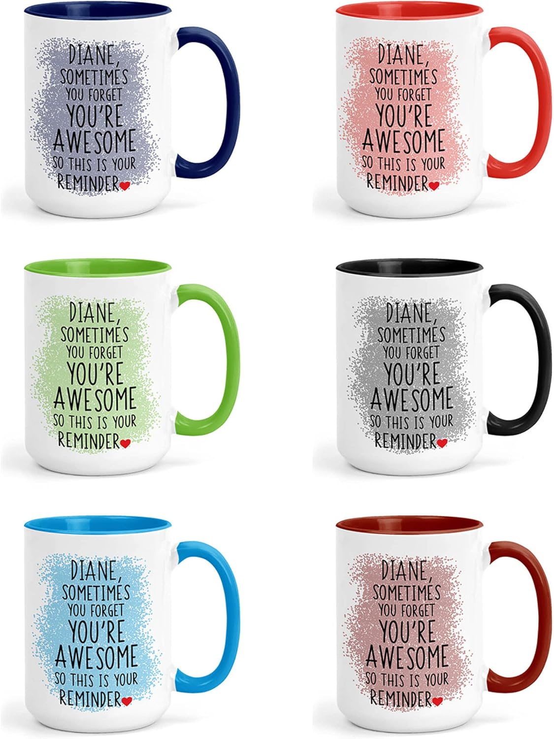 The Debra Dale Designs 'You're Awesome' Customizable Mug is the ultimate expression of appreciation for the coffee lover in your life. Available in an array of six eye-catching colors and offered in two practical sizes, this mug set allows you to personalize your gift to align with the recipient's taste and style. Crafted from premium ceramic, each mug boasts a glossy finish with a colored interior and a matching handle, enhancing both aesthetic appeal and functional comfort. The robust construction guarantees durability, making it suitable for daily use, whether in the morning rush or a relaxing evening. Celebrate your loved ones or treat yourself with a mug that says 'You're Awesome' every day. This mug promises to delight any coffee enthusiast, making every coffee moment a special one.