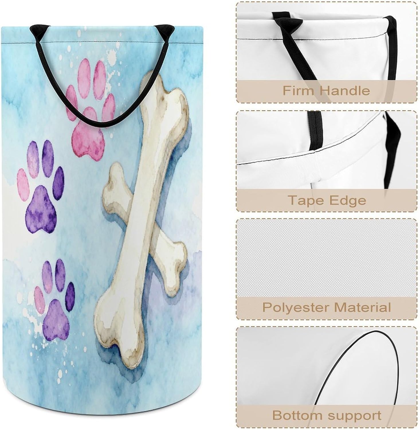 Discover the ultimate solution for home organization with this innovative clothes hamper for bedroom storage.Crafted to serve as a versatile storage for dirty clothes,it combines functionality with style,making it an essential freestanding tall Dog Paw Prints Bones clothes hamper for any living space.The narrow laundry bag design ensures it fits effortlessly into corners or closets,while its funny laundry hamper elements inject personality into your room decor laundry hamper setup.Experience thoughtful engineering with comfortable hand straps that allow for convenient carrying,ensuring your items remain secure during transport.As a versatile storage for dirty clothes,it excels in holding a wide array of garments and household miscellany,thanks to its spacious interior.Folding capabilities mean it occupies minimal space when not in use,transforming effortlessly from a practical tool to a stylish room decor Dog Paw Prints Bones laundry hamper that complements any aesthetic.Perfect for diverse home scenarios,this Dog Paw Prints Bones clothes hamper for bedroom storage adapts to storing and transporting laundry,snacks,or other essentials with unmatched flexibility.It shines as a versatile storage for dirty clothes in bedrooms,bathrooms,or living areas,offering the reliability of a freestanding tall clothes hamper without bulk.The narrow laundry bag profile ensures it navigates tight spots with ease,while its funny laundry hamper design brings a playful touch to mundane tasks.
