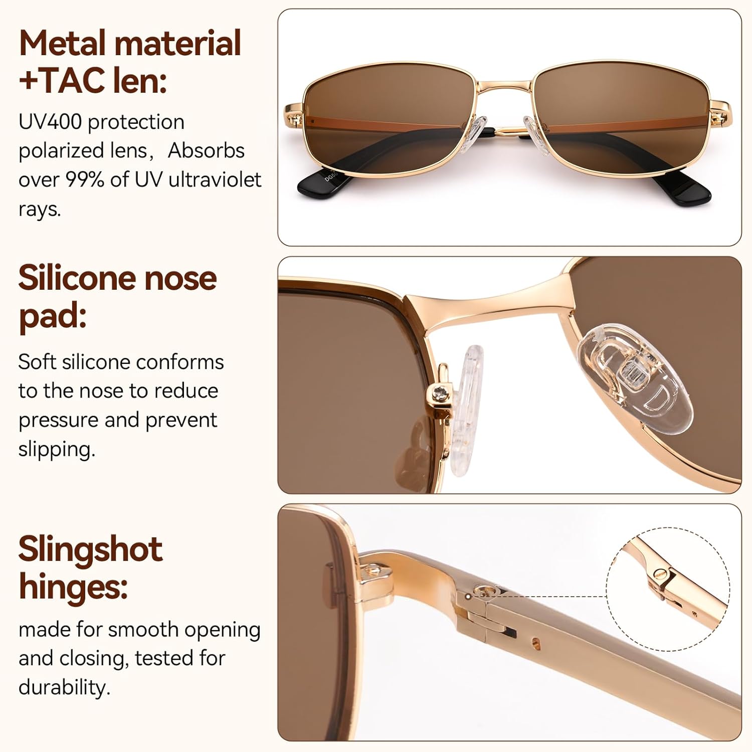 Discover our Retro Rectangle Polarized Sunglasses, a unisex essential. Its classic vintage metal frame oozes timeless charm, suiting any outfit. With UV400 protection, it blocks harmful UVA and UVB rays, ensuring your eyes' safety. The polarized lenses are a game - changer for outdoor driving, eliminating glare and providing a clear view. The trendy style not only adds a fashion statement but also offers more coverage. Ideal for beach vacations, road trips, or daily use, these sunglasses are your perfect sunny - day companion.