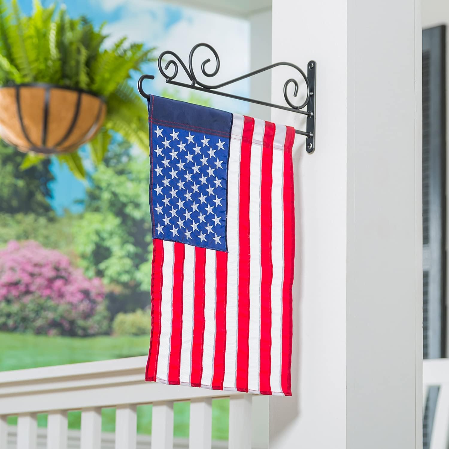 This Black Scroll Metal Wall Bracket and Hook is an elegant way to proudly display your artistic flags. It sturdily fits on the side of your home or against a wooden pole in your yard and is so simple to install. Make an impression! These beautiful, long lasting and durable flag poles are made with the highest quality materials. Providing you with a flag pole that's easy to change your flags every season is our goal.Not only are they easy to use, but they're made to last and last. Sure to hang your flag proudly in front of your home for month after long-lasting month.