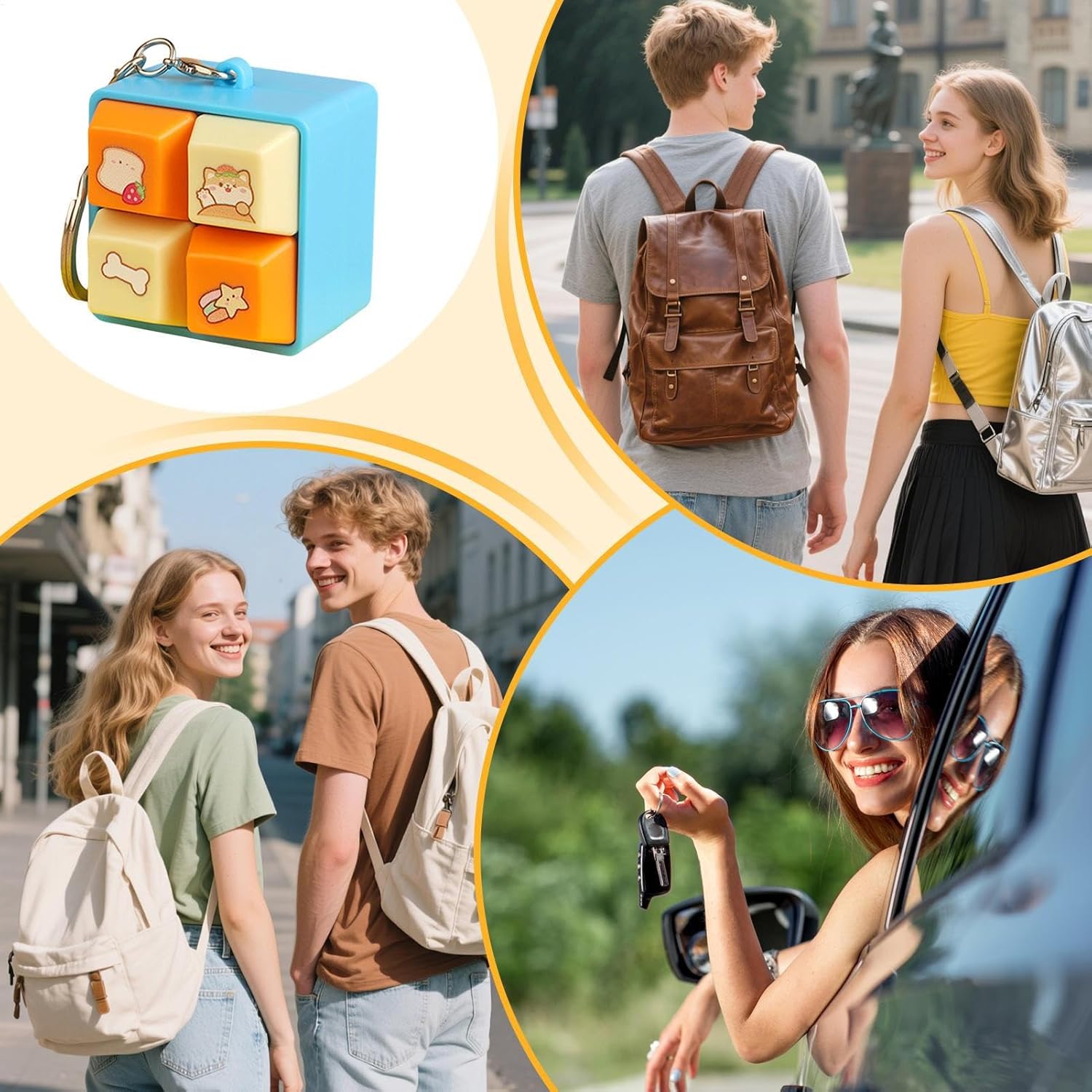The Cat Button Funny Backpack Keychain is an engaging accessory designed to enhance daily convenience while offering stress relief. Featuring a unique four-square grid layout with light-up functionality, this sensory toy captivates users of all ages, making it ideal for children alike. Perfectly suited for attachment to bags, backpacks, wallets, handbags, or luggage, it adds a playful touch to travel, school, office, or car environments. Its compact design ensures portability, while the built-in key chain allows effortless integration into everyday routines. Whether on a desk or dangling from a backpack, this keychain brings joy and practicality together in a single delightful product, appealing to those seeking both utility and fun in their accessories.SpecificationProduct name: Fidget ClickerProduct size: about 4.3x4.3x4cm/1.69x1.69x1.57InchesProduct material: ABSApplicable age: 7-14 years oldListFidget Clicker x 1Note:1. Due to lighting effects and display angles, there may be color differences in the product.2. Due to manual measurement, there may be errors in product size, please understand.