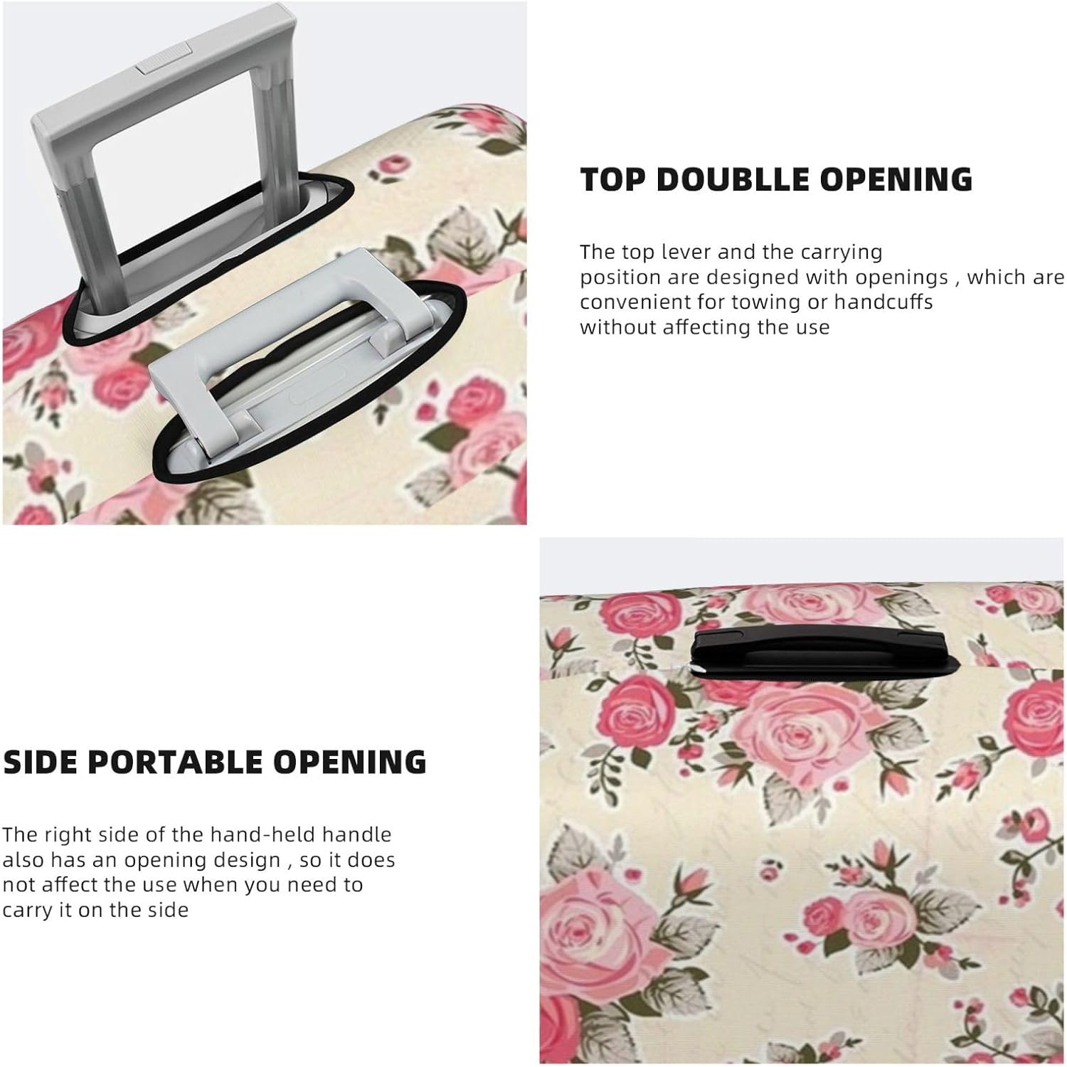 Product DescriptionTravel Luggage Cover1. Fits 18-32 Inch Suitcase.2. Easy To Fit And Remove.3. Identify Your Luggage Quicker.4. Full Of Stretch And High Elasticity.5. Stay Your Luggage New-Looking6. Tear-Resistant, Durable And Washable. Not Fade After Washing.Product Usage1. Pull Up The Pull Rod.2. Insert One Of The Holes Into The Pull Rod.3. Pull Down The Luggage Compartment Cover.4. Expose The Side Handhole.5. Pull The Bottom Zipper Tightly.6. Insert The Fixed Buckle To Perfectly Protect The Luggage Compartment Shell.4 Sizes AvailableS (18.8-20.8 H) X (12.5-14.2 L) X (7.8-9.4 W) Fits 18-21 Inch Luggage.M (22.8-25 H) X (14.6-16.1 L) X (9.0-10.6 W) Fits 22-24 Inch Luggage.L (26-28 H) X (16.5-18.5 L) X (10.2-11.8 W), Fits 25-28 Inch Luggage.Xl (28.3-31.5 H) X (18.9-21.2 L) X (11.4-13 W) Fits 29-32 Inch Luggage.How To Measure Your Luggage Size?1.Height Measurement (Without Wheel)2.When Measuring Length And Height, Please Open The Luggage And Measure From The Inside.3.If Your Luggage Is Soft Shell Style,Please Order A Bigger Size.How To Maintain The Luggage Cover?- Wash It With Clean Water In Ordinary Temperature.- Do Not Wash It With Hot Water And Alkaline Detergent.- Hang To Dry And Store In Ventilated Place Instead Of Sun Exposure.-Washing Separately To Avoid Staining.