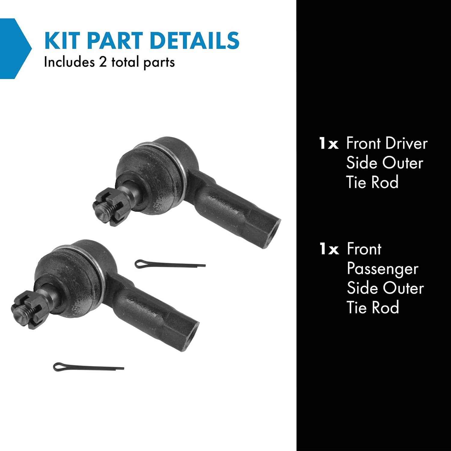 2 Piece Tie Rod SetKit Includes(1) Front Driver Side Outer Tie Rod(1) Front Passenger Side Outer Tie RodFitmentAcura Integra 1986-89 - Front Driver & Passenger SideHonda Accord 1979-89 - Front Driver & Passenger SideHonda Civic 1973-87 - Front Driver & Passenger SideHonda Prelude 1979-87 - Front Driver & Passenger SideProduct AttributesQuantity: 2 PieceReference Numbers534-308ES2095RMES2095RSUS02547SUS07881